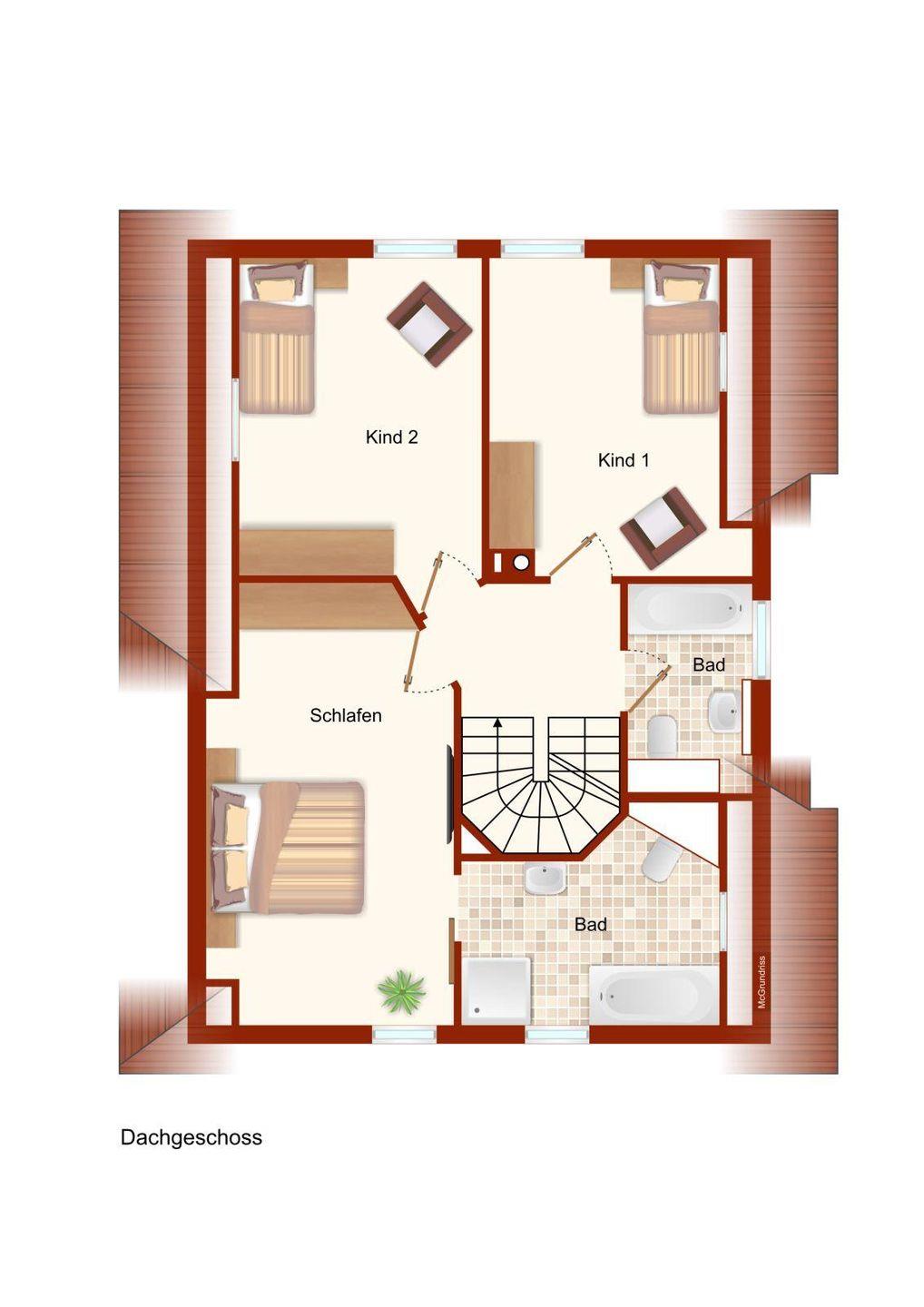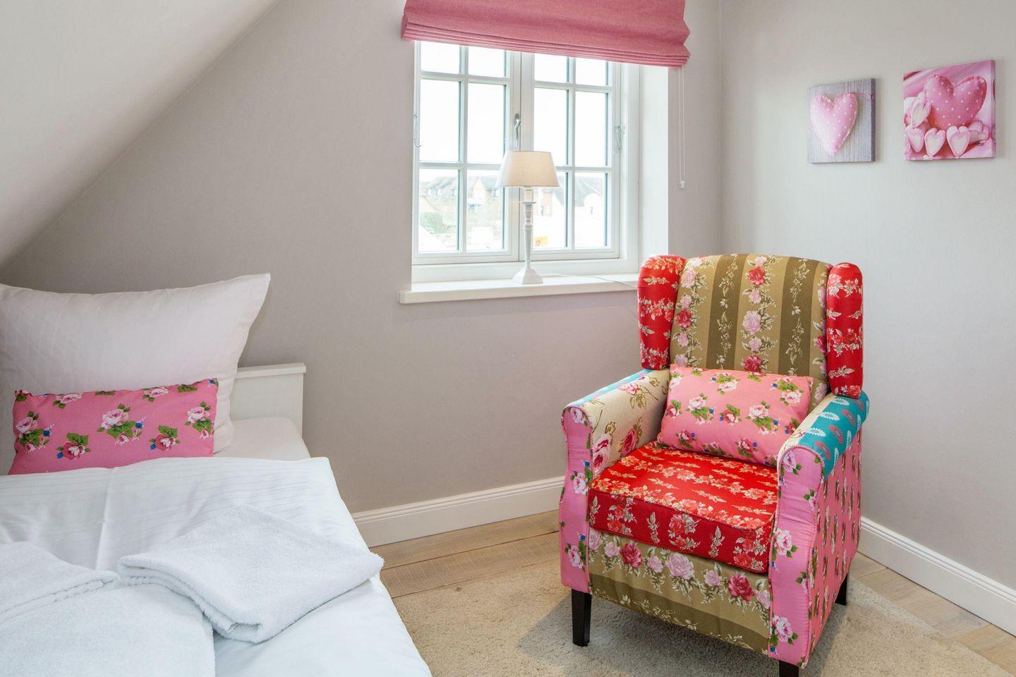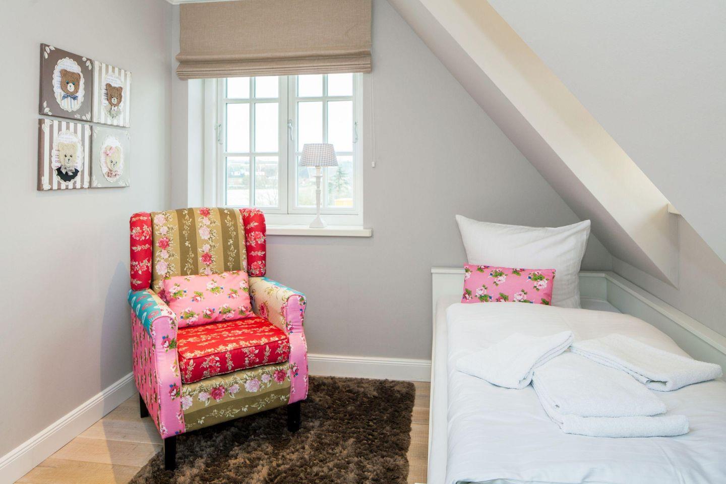 • Im ersten Stock gibt es ein Schlafzimmer mit Doppelbett sowie zwei Einzelzimmer.