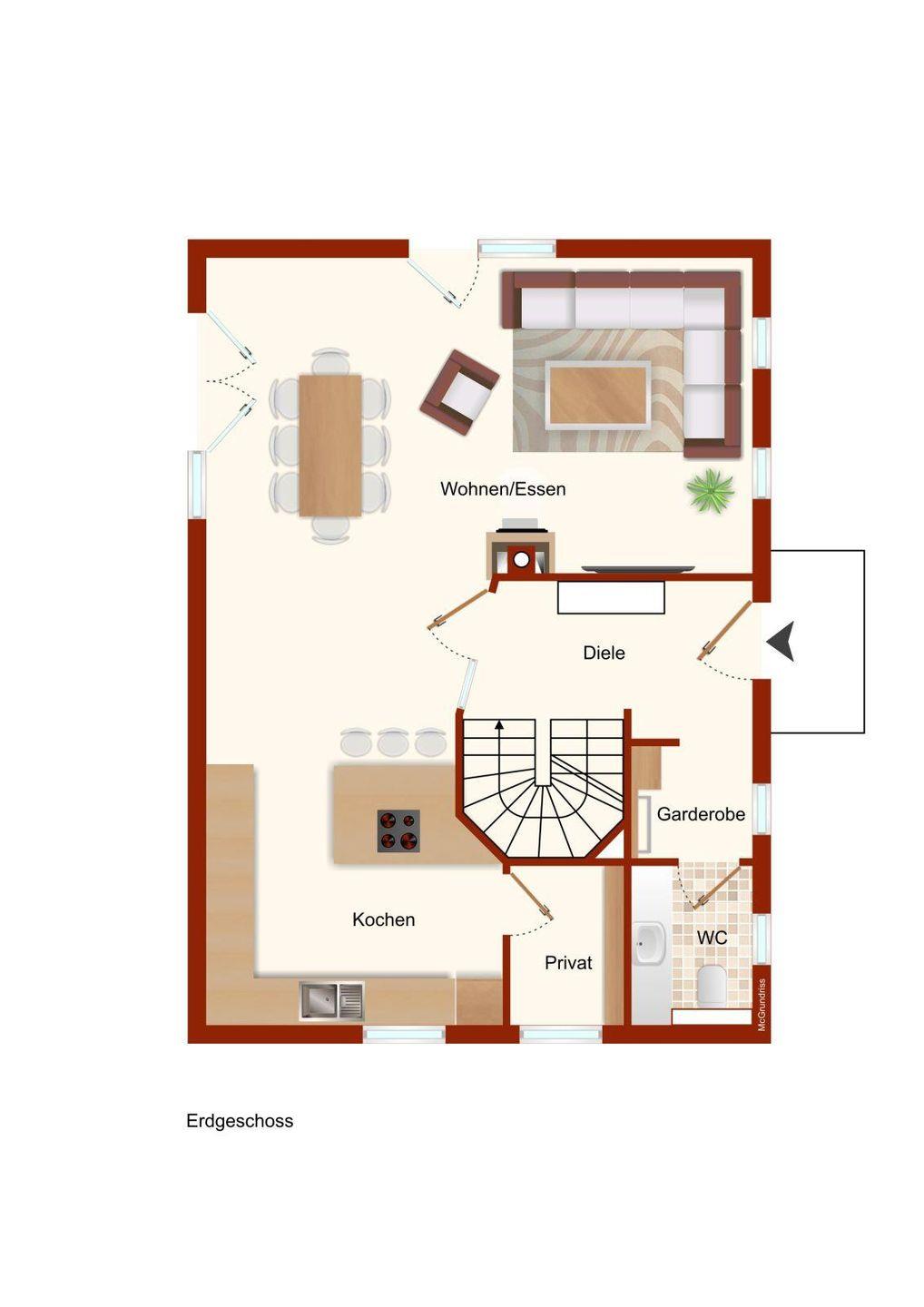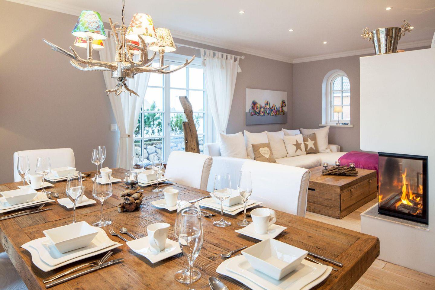 Auf 200 Quadratmetern findest du ausreichend Platz für bis zu acht Personen. Der großzügige Wohn- und Essbereich im Erdgeschoss lädt mit seinem knisternden Kamin zu gemütlichen Stunden ein. Eine moderne Sauna sorgt für zusätzliche Entspannung.