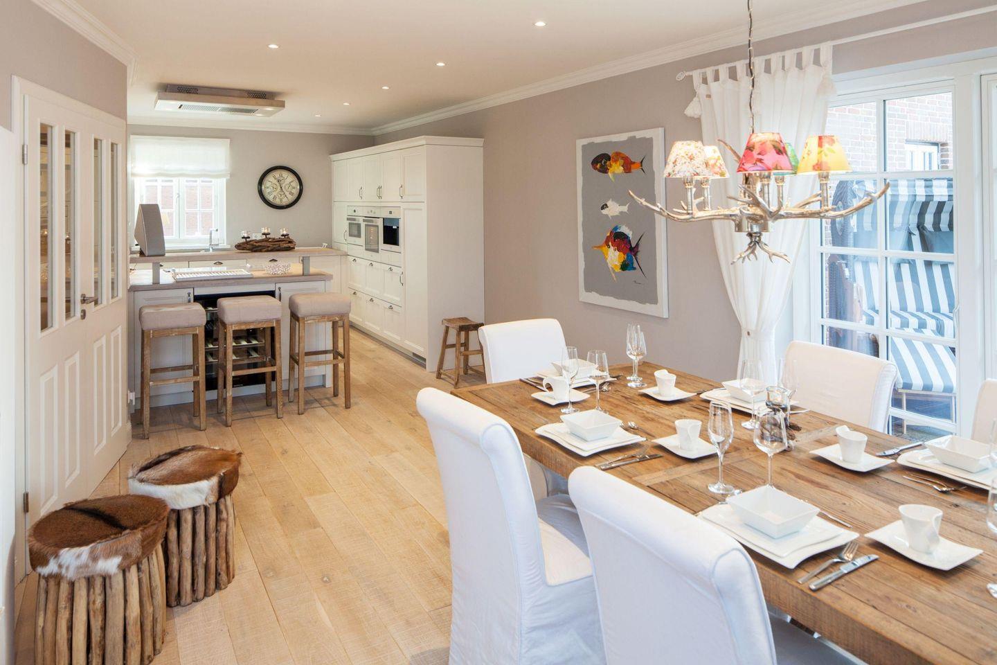 Drei Bäder und ein zusätzliches Gäste-WC bieten maximalen Komfort. Die möblierte Terrasse und ein saisonal verfügbarer Strandkorb laden dazu ein, die frische Nordseeluft zu genießen.