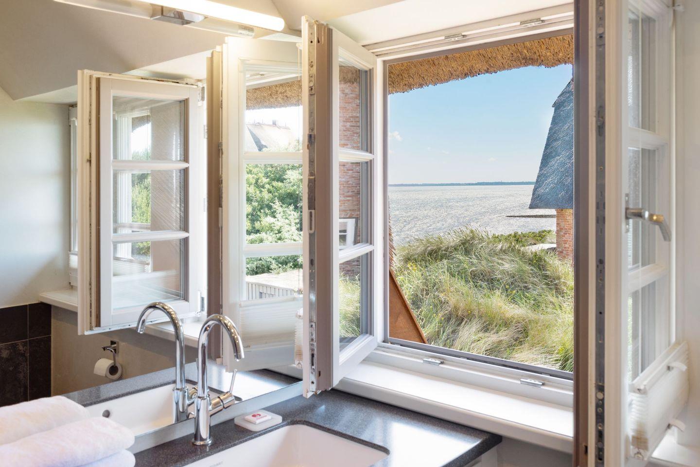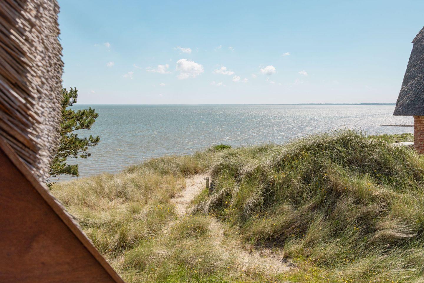 Von Ihrer im Obergeschoss gelegenen Wohnung "Jonna's Ausblick" (57 m2) und der im Untergeschoss gelegenen Wohnung "Momme´s Ausblick" haben Sie einen einmaligen Blick über das Wattenmeer und den Lister Oststrand, mit freiem Blick bis nach Dänemark.