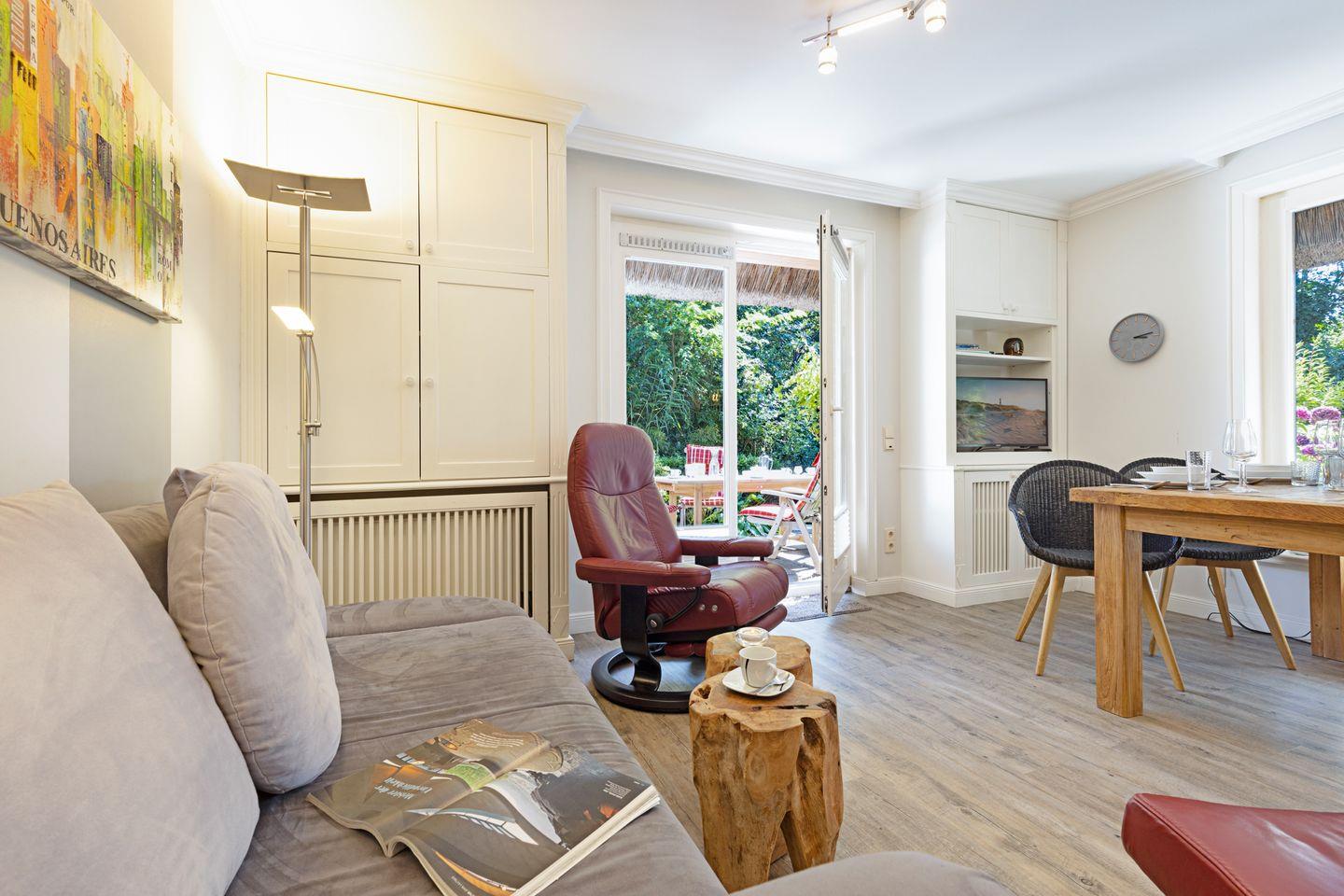 Modernes Ferienhaus unter Reet nahe dem Lister Oststrand mit großem Garten und Terrasse für erholsame Urlaubstage.