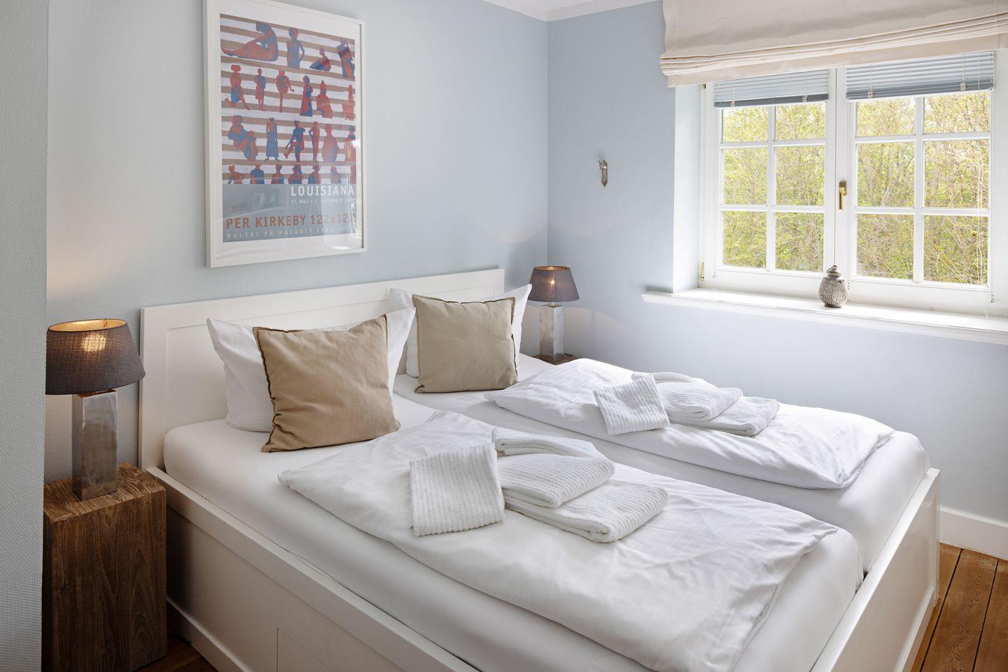 Der herrliche Sandstrand der Blidselbucht ist in wenigen Minuten zu Fuß erreichbar.