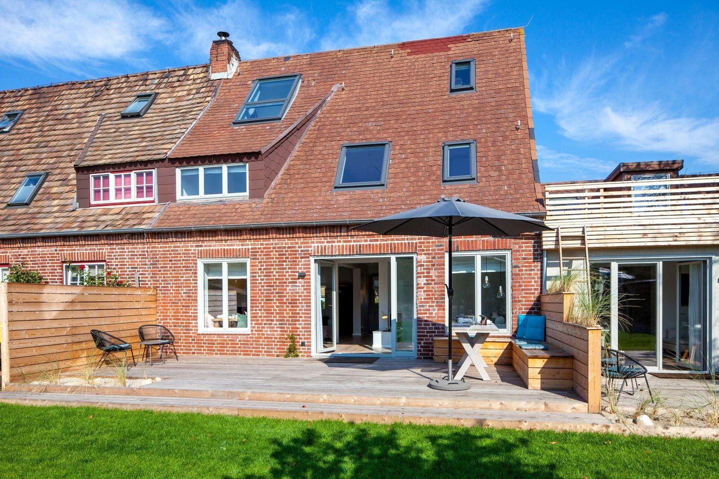Stilvolles Ferienreihenhaus für bis zu 5 Personen mit Kamin, großem Garten und Sauna.
