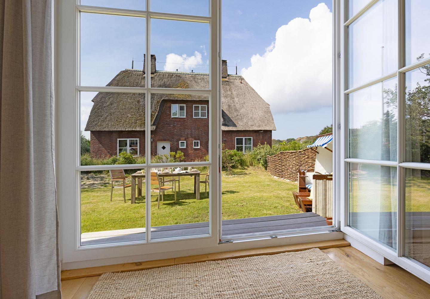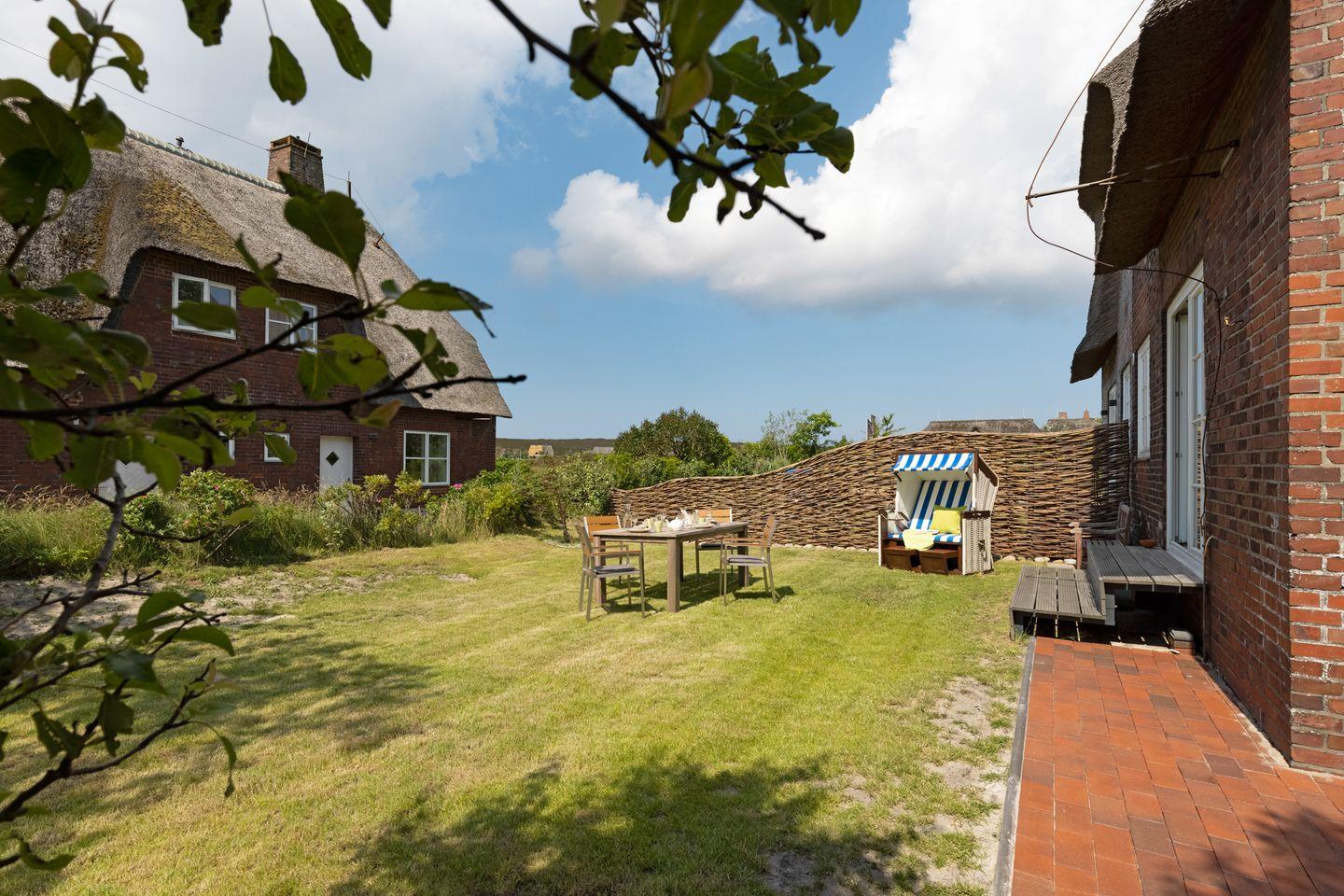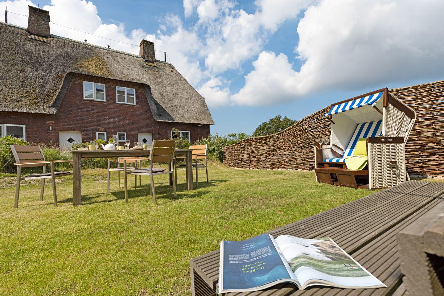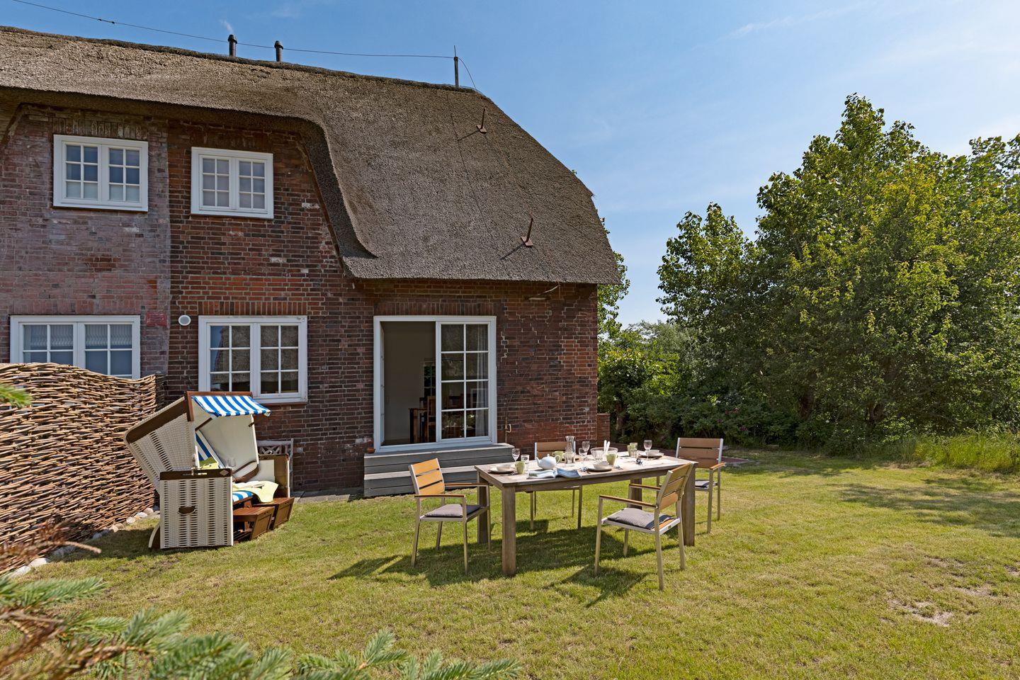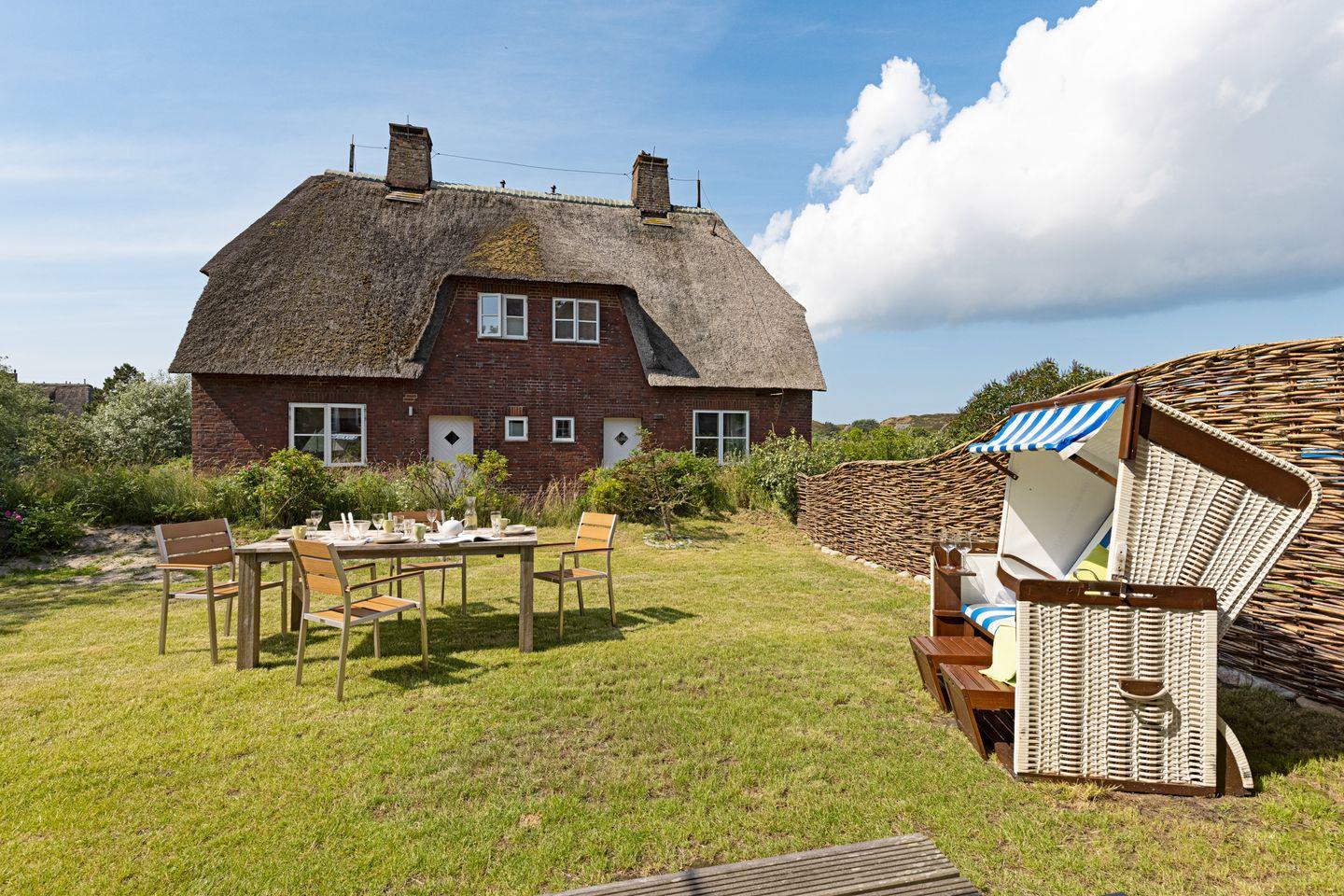 Idyllisch gelegenes Feriendoppelhaus im Landhausstil unter Reet mit für bis zu 4 Personen in ruhiger Lage mit großem Garten.