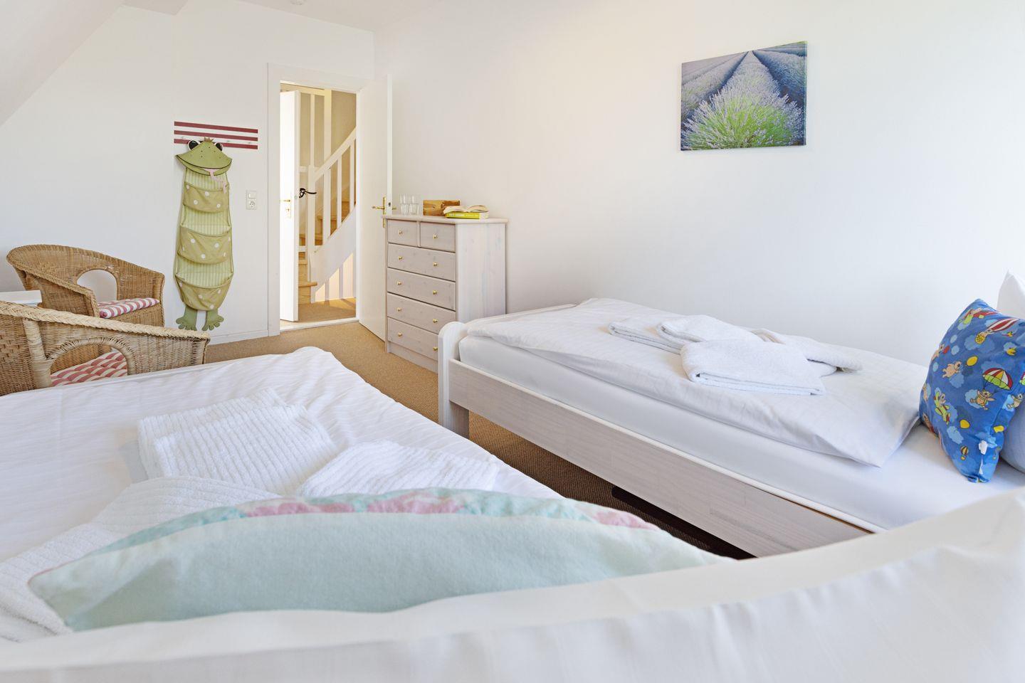 Es ist südlich ausgerichtet und besitzt einen großen Garten. Direkt gegenüber befindet sich im Frischwassertal ein kleiner Park. Ihr an einer ruhigen Straße gelegenes Domizil im Landhausstil bietet Platz für bis zu vier Personen. Im Erdgeschoss finden Sie ein geräumiges Wohn-/Esszimmer mit offener, gut ausgestatteter Küche. Das Obergeschoss (geschlossenen Treppe) ist unterteilt in zwei Schlafräume (eines mit Doppelbett, eines mit zwei Einzelbetten). Ebenfalls im OG befindet sich ein großzügiges Badezimmer mit Dusche und Badewanne. Etwa 5 Minuten zu Fuß entfernt erreichen Sie das Wattenmeer.