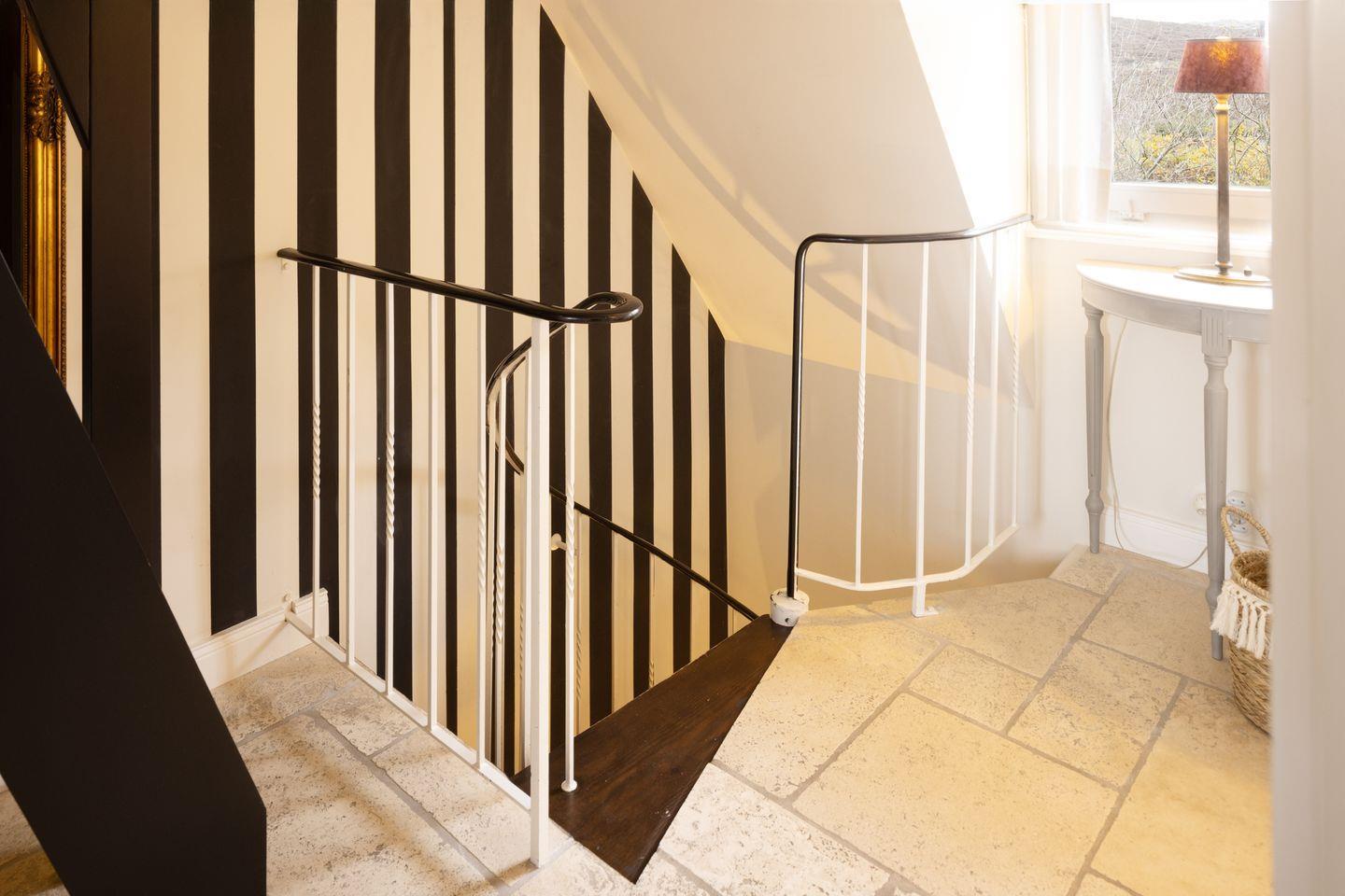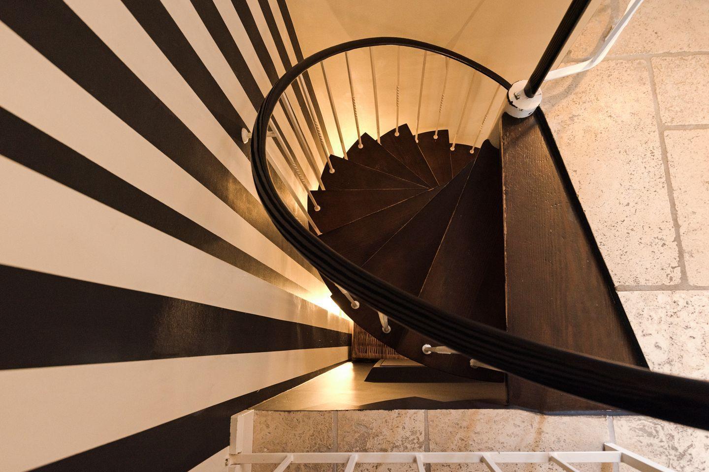 Im ersten Stock (Wendeltreppe) befinden sich zwei Schlafzimmer mit Doppelbetten und ein Bad mit Dusche. (Ein Schlafraum im Dachgeschoss, welcher über eine Leiter erreichbar ist, dient ausschließlich privaten Zwecken und steht nicht zur Vermietung zur Verfügung.)