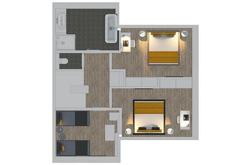 Auf jeder der vier Ebenen befindet sich ein WC mit Bad oder Dusche.