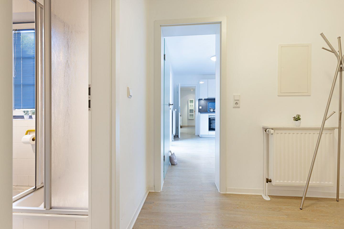 Es liegt im Souterrain und ist mit drei Schlafräumen, offener Küche und Duschbad ausgestattet.