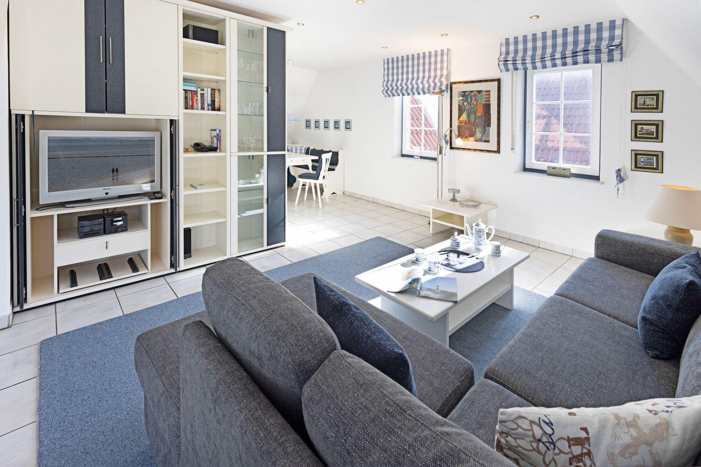 Das Appartement "Cap San Vilano" (80m²) für bis zu vier Personen liegt im Dachgeschoss und ist ideal für Familien mit Kindern eingerichtet.