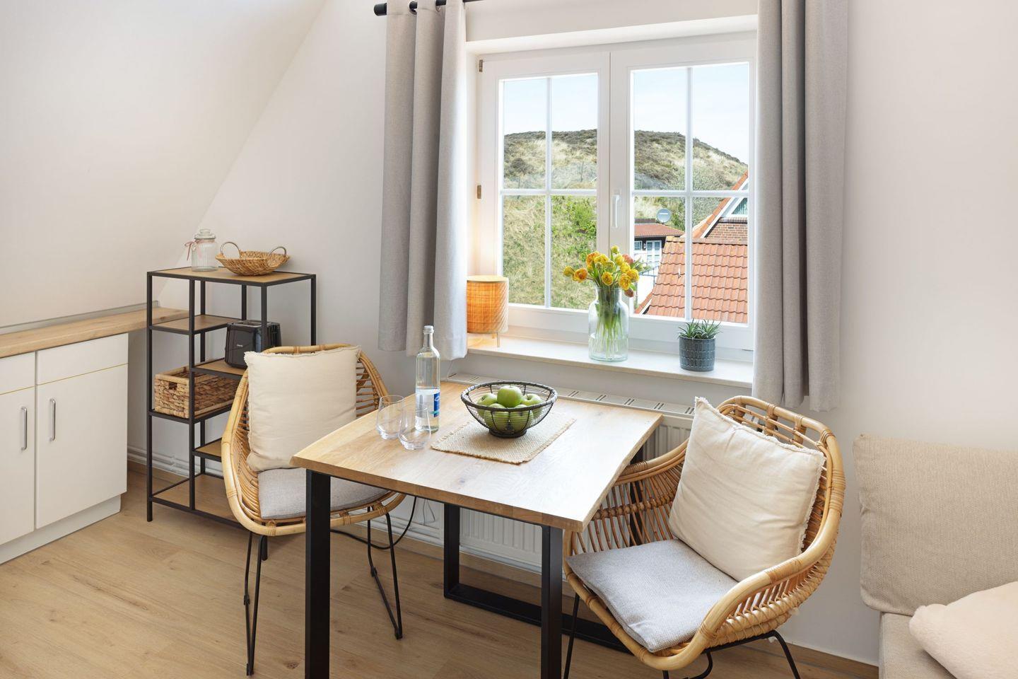 Gemütliches Dachgeschoss-Appartement mit Gemeinschaftsgarten und Blick auf die Lister Dünenlandschaft.