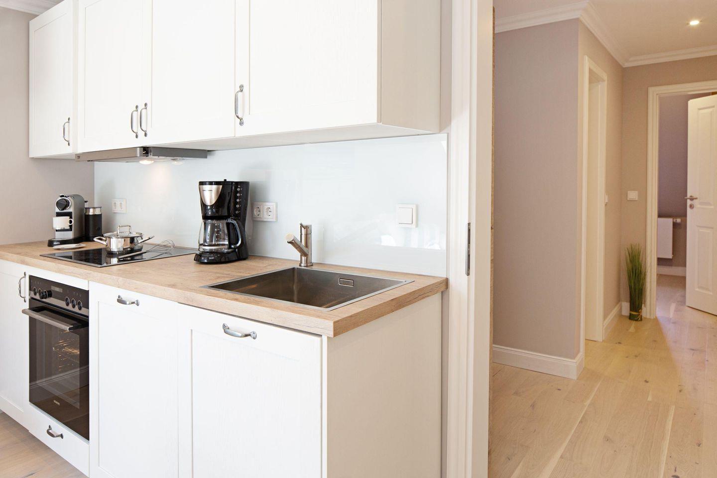 Das Appartement am Lister Tor verfügt über zwei separate Schlafzimmer mit Doppelbett, eine moderne offene Küchenzeile, sowie einen Balkon.