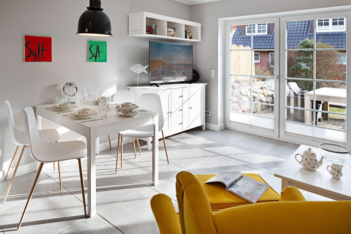 Modernes Reihenmittelhaus Bay Huus mit sonnigem Garten und Terrasse auf Sylt.