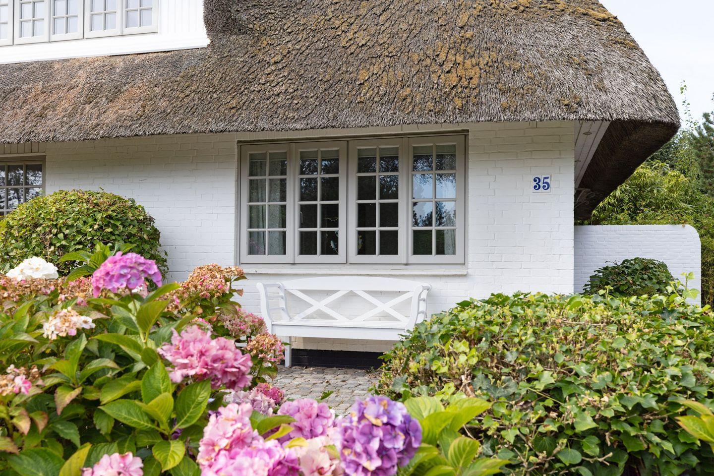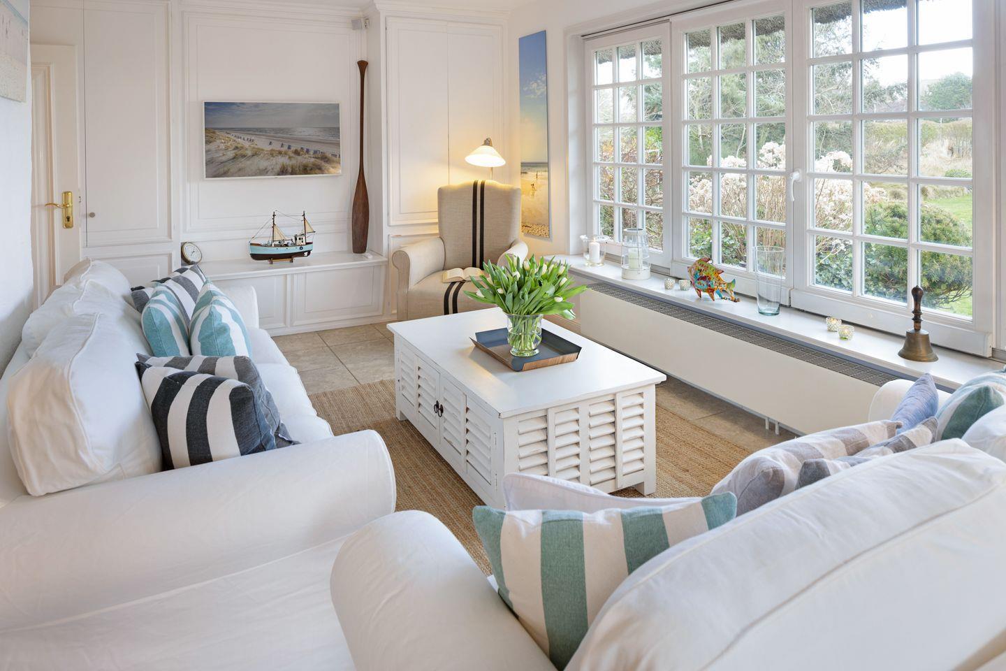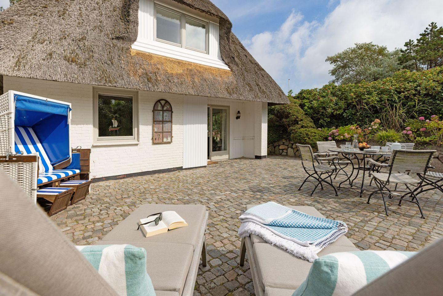 Gemütliches Ferienhaus Nordmeer unter Reet mit Garten, Strandkorb und Tischtennisplatte am Lister Oststrand.