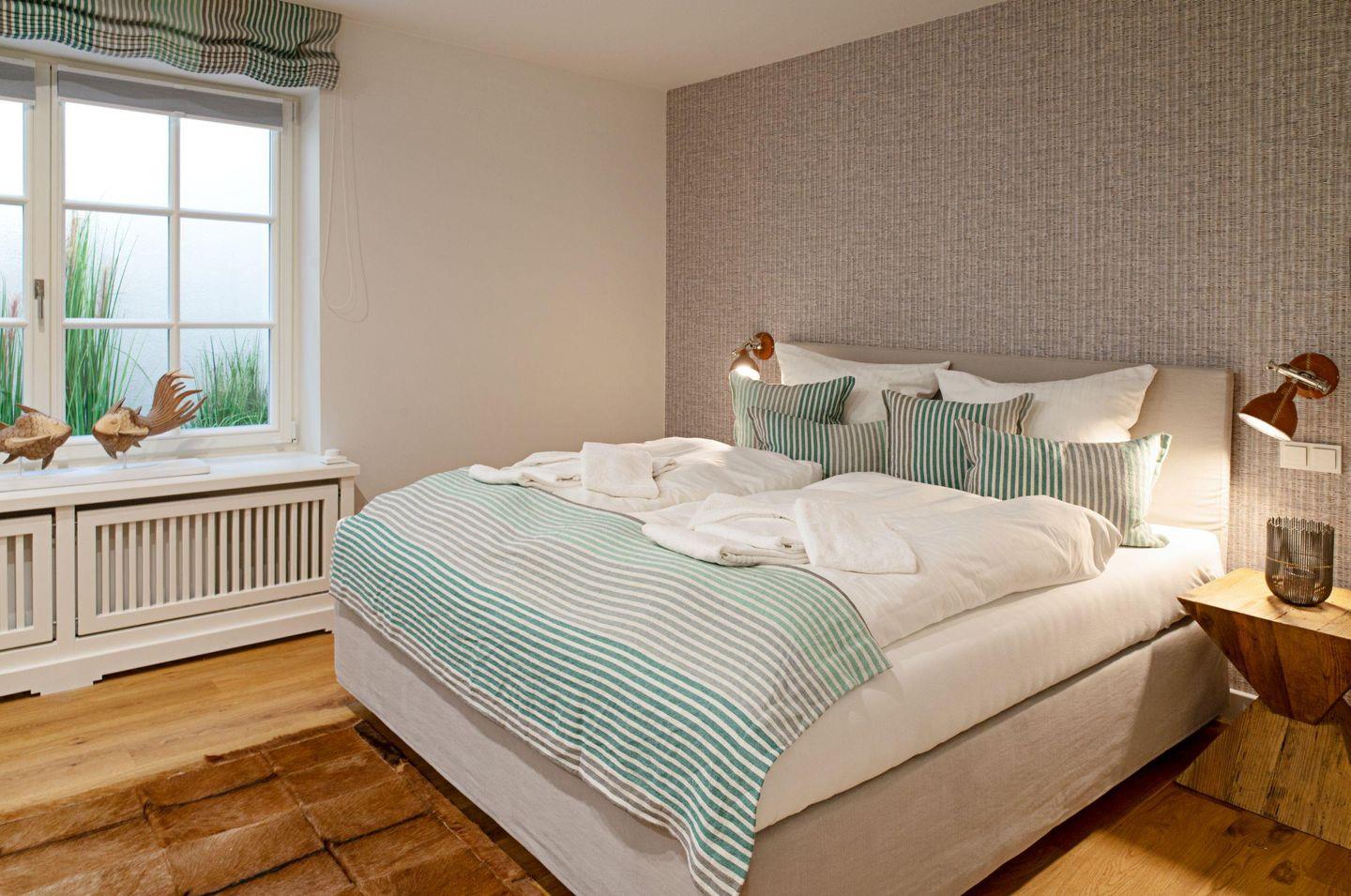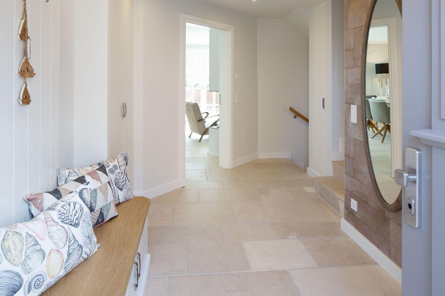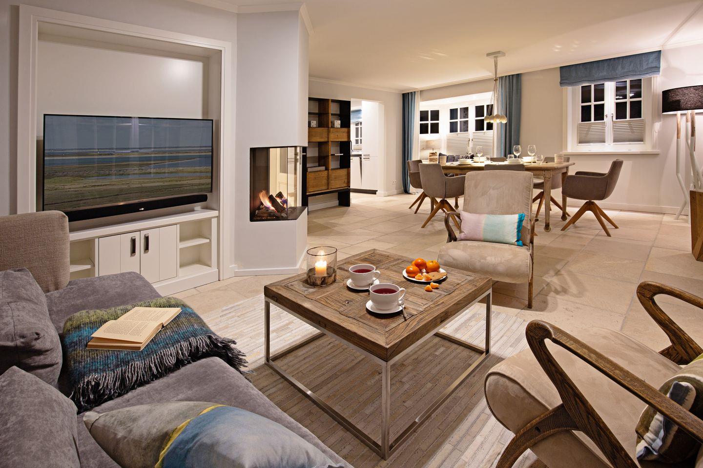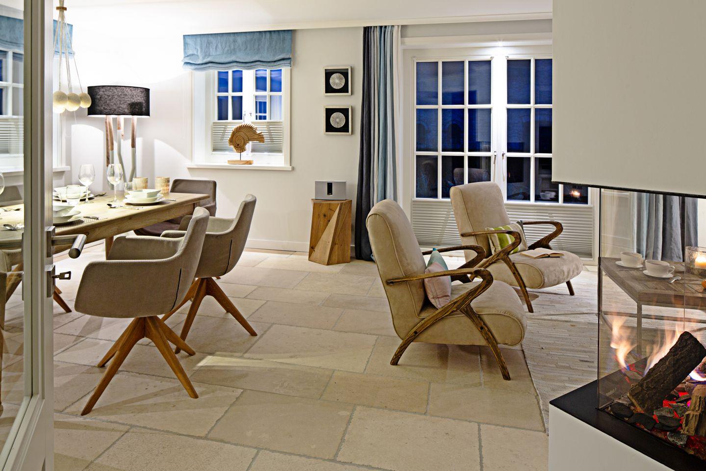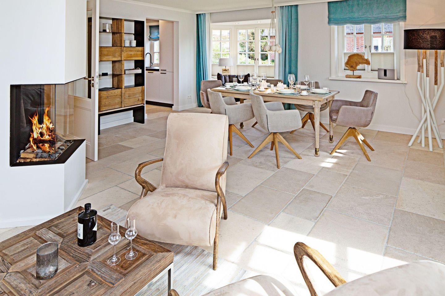 Großzügiges Feriendoppelhaus unter Reet für bis zu sechs Personen mit Saunalandschaft, Gas-Kamin, Garten und Terrasse in Strandnähe.