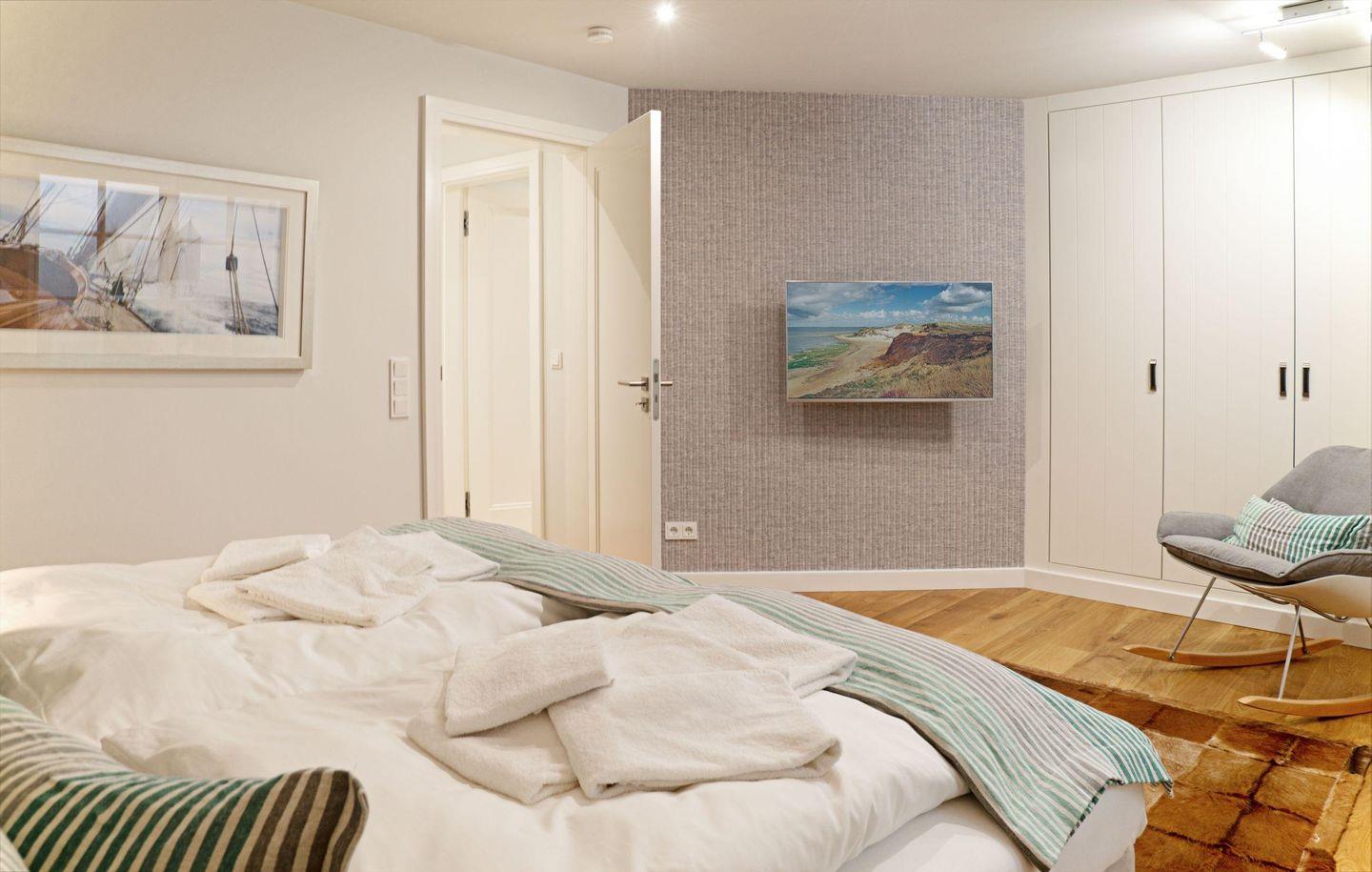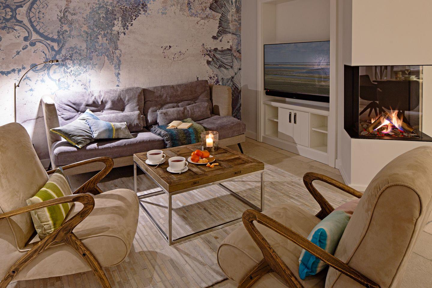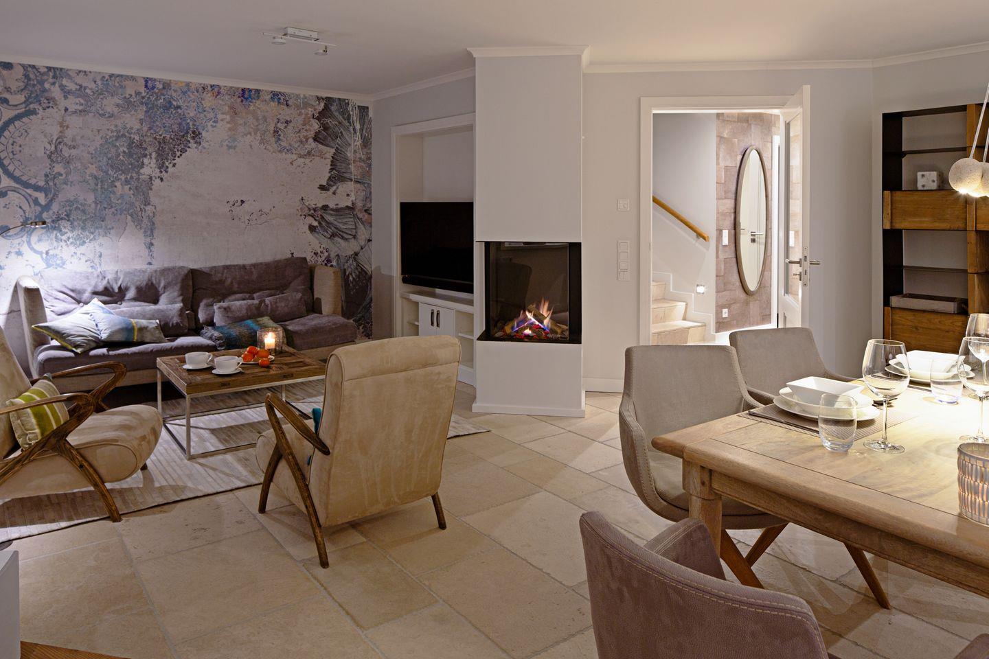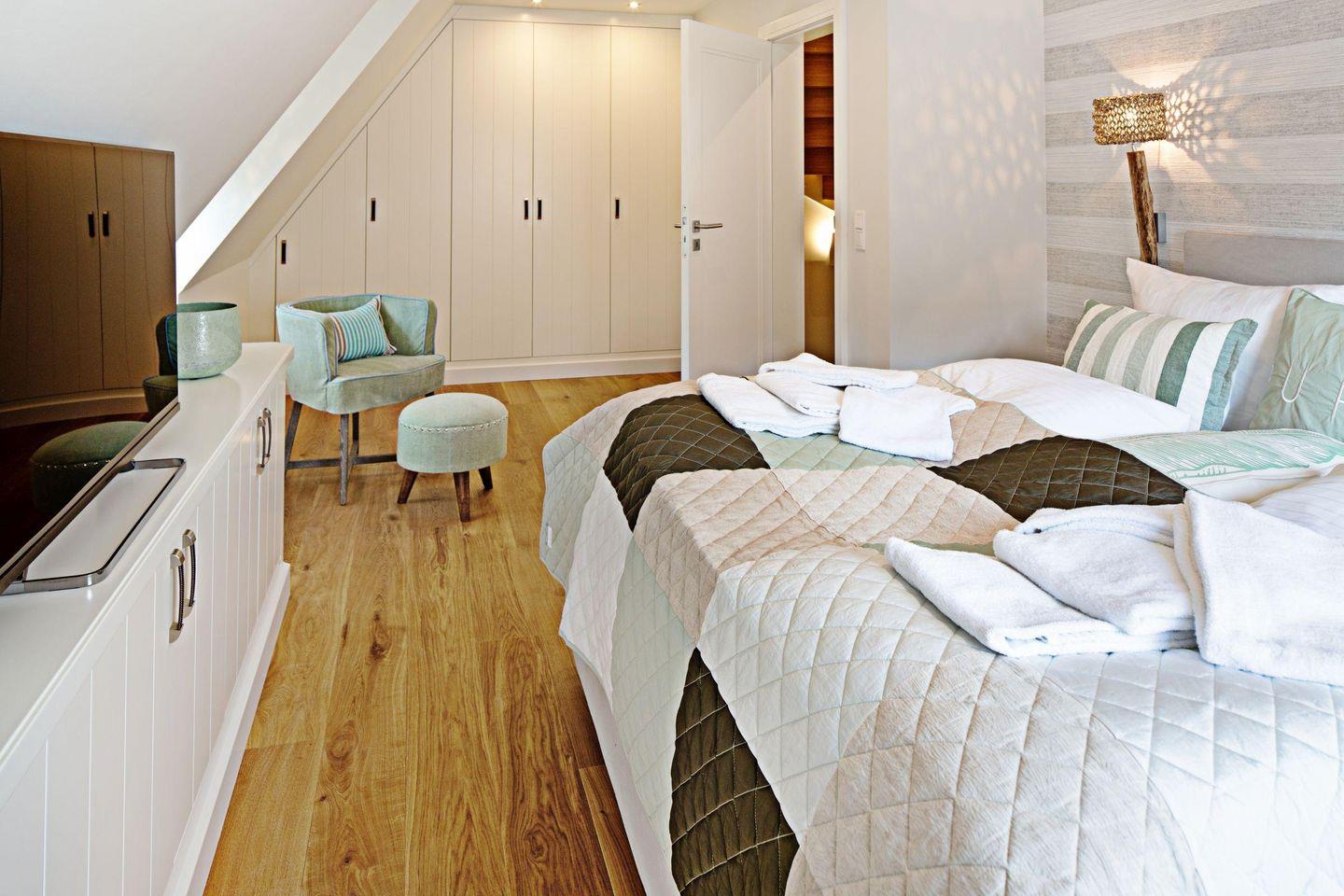 Großzügiges Feriendoppelhaus unter Reet für bis zu sechs Personen mit Saunalandschaft, Gas-Kamin, Garten und Terrasse in Strandnähe.