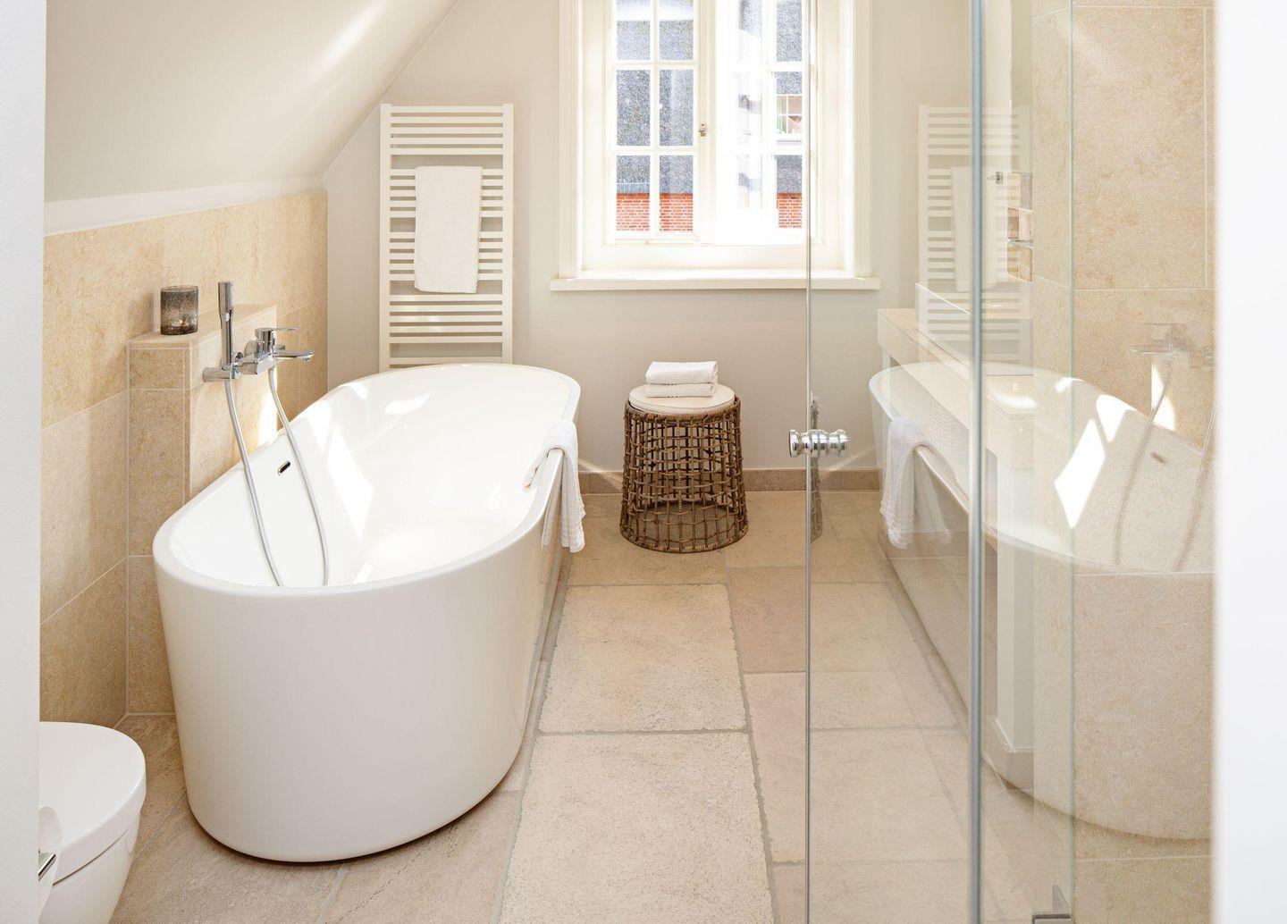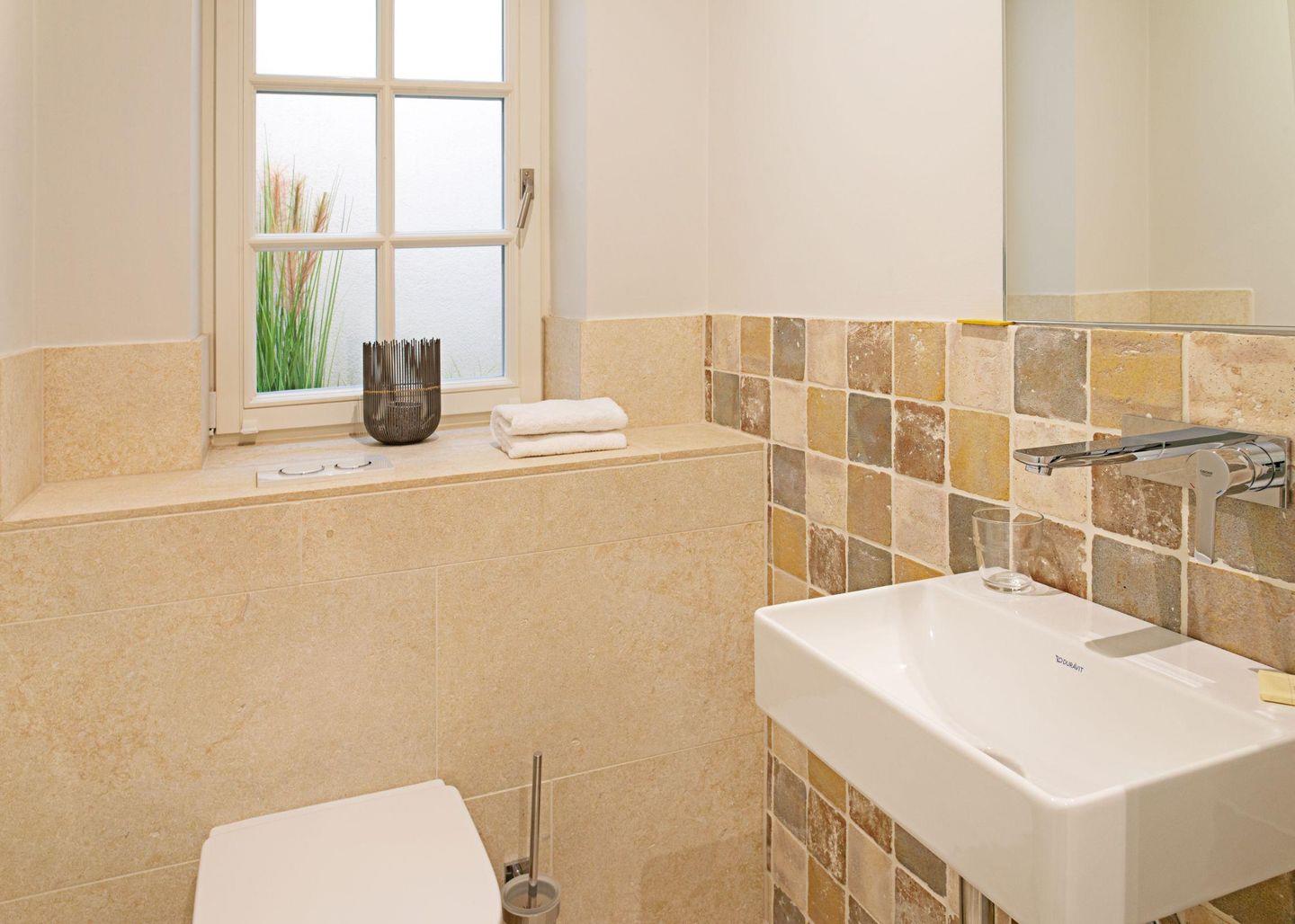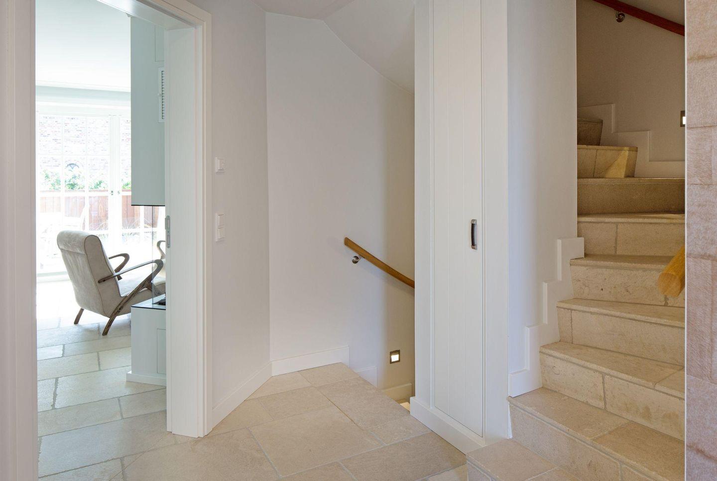 Im Erdgeschoss befinden sich das Wohnzimmer mit Kamin und eine separate Küche. Ein luxuriöses Wellnessbad mit Saunalandschaft und großer Regendusche und ein weiteres Schlafzimmer mit Doppelbett befinden sich im Souterrain. Vom Wohnzimmer aus gelangen Sie in den Garten mit Terrasse. Ein zusätzliches Gäste-WC befindet sich im EG. Ein Parkplatz befindet sich direkt vor dem Haus.