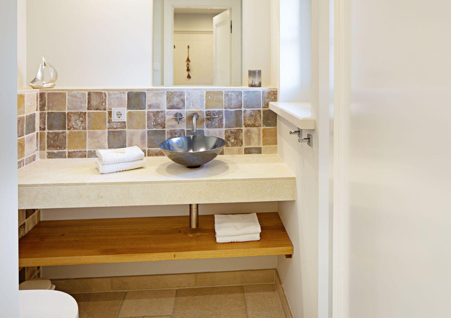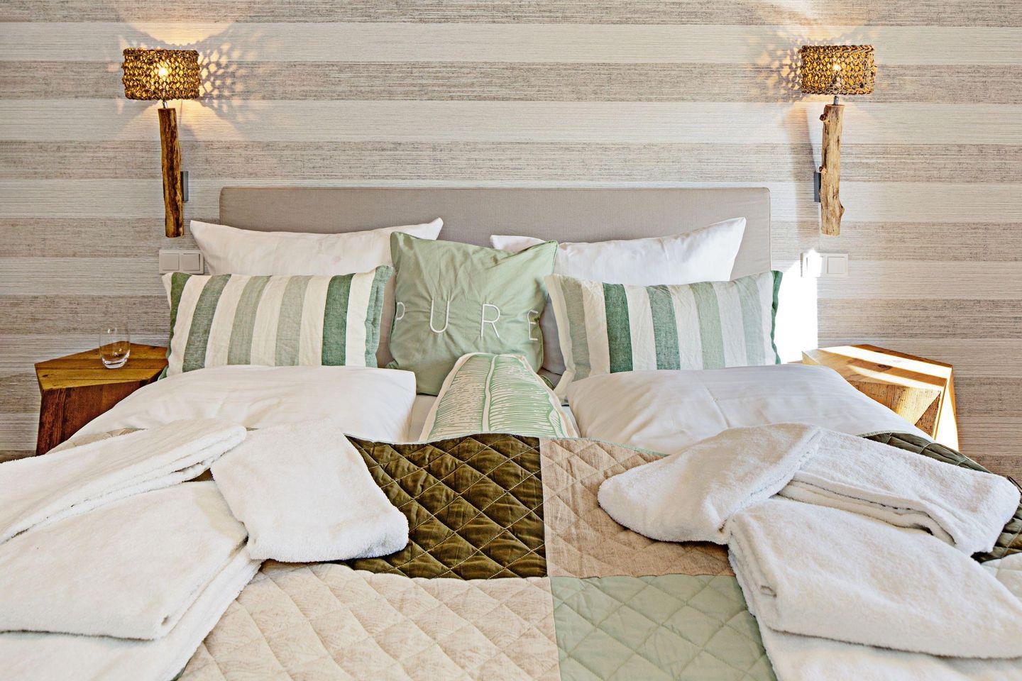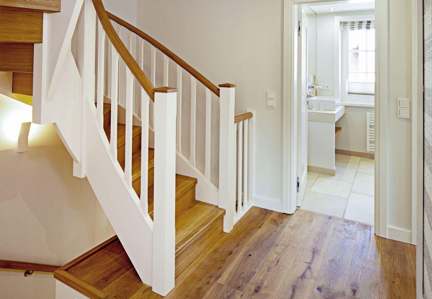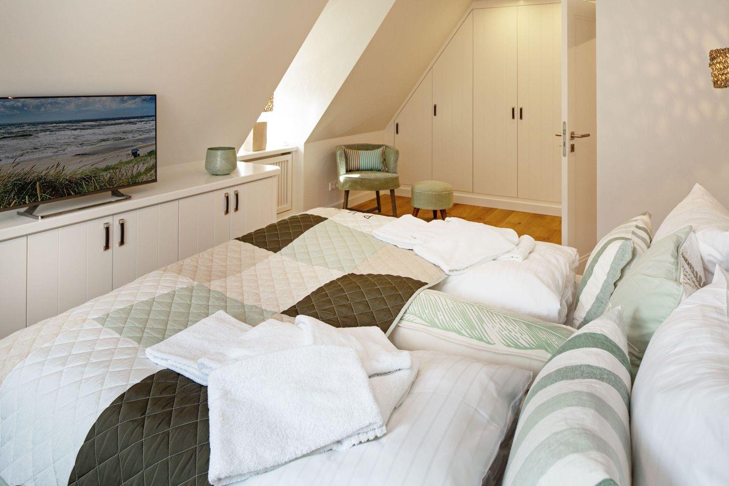 Das Haus ist in den oberen Etagen mit zwei Schlafzimmern – eines mit Doppelbett und eines mit zwei Einzelbetten - sowie einem Badezimmer ausgestattet.