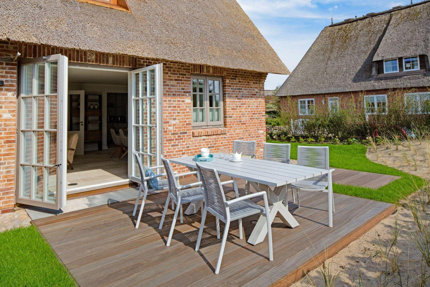 Das hochwertig ausgestattete Ferienhaus unter Reet bietet auf 158qm Platz für bis zu sechs Personen und befindet sich 200 Meter nah am Wattenmeer.