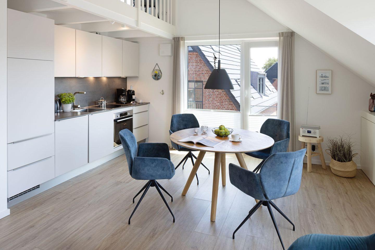 Es liegt nur etwa 200m vom Oststrand entfernt. Der Lister Markt mit Gastronomie, Läden, Konditorei sowie einem EDEKA liegt um die Ecke. Auch der Lister Hafen mit Shoppingmöglichkeiten und Gastronomie lässt sich mit einem kurzen Spaziergang über den Deich in 15 Minuten zu Fuß erreichen. Das Appartement bietet für 4 Personen Platz auf 80m2. Mit dem Wohnraum, einer offenen Küche und großer Schlafgalerie stehen gemütlichen Abenden oder Tagen bei „Schietwetter“ nichts im Weg.