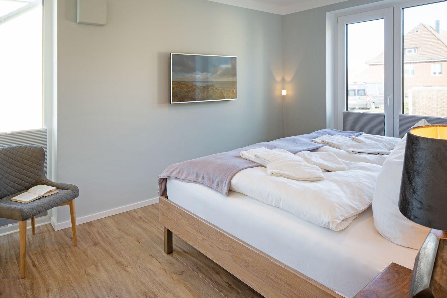 Willkommen im Appartement "Priel". Das im Obergeschoss gelegene Ferienappartement bietet Ihnen Platz für 4 Personen auf 80m². Sie erreichen Ihr Domizil bequem mit dem Fahrstuhl im Haus. Das Appartement nahe dem Lister Tor verfügt über zwei Schlafzimmer mit Doppelbett und Flachbildfernseher, zwei Bäder, eine moderne offene Küche, sowie zwei Balkone.