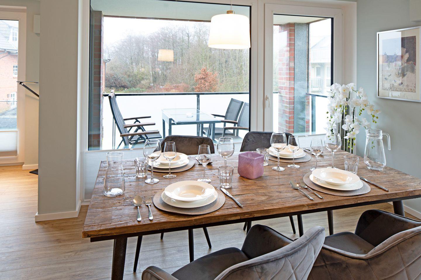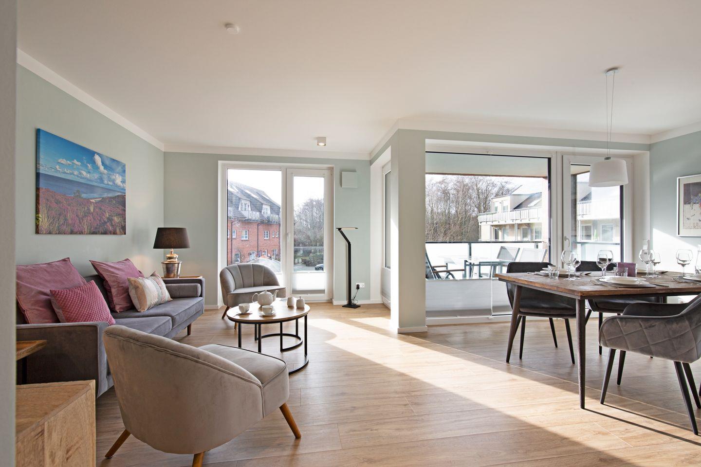 Großzügiges Appartement im Obergeschoss für 4 Personen mit 2 Balkonen und Fahrstuhl im Haus an der Oststrandpromenade.