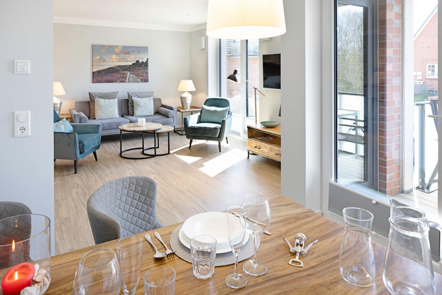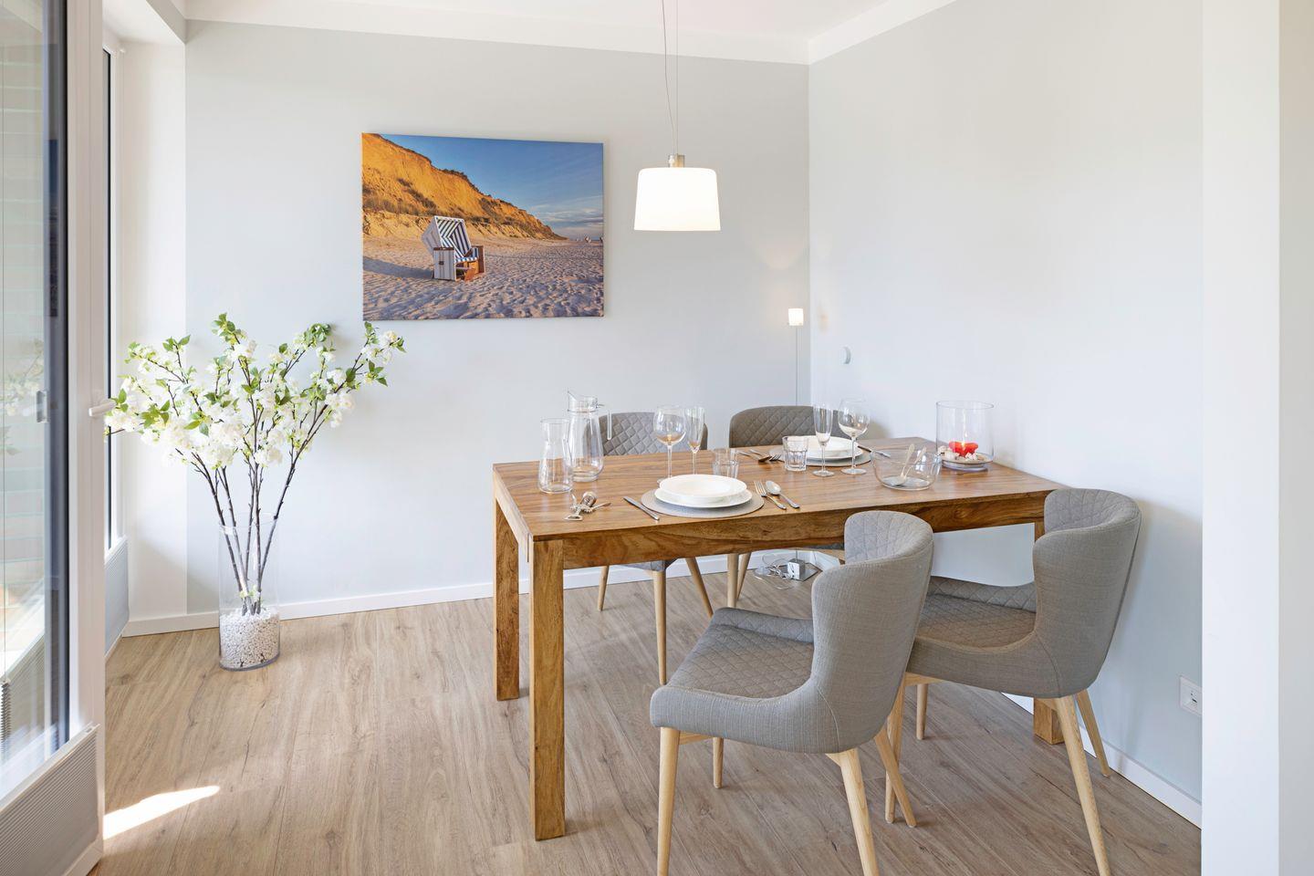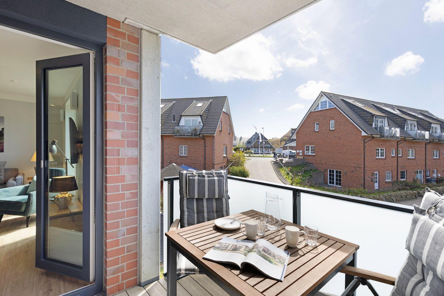 Großzügiges Appartement „Warft“ im Obergeschoss für 2 Personen mit Balkon und Fahrstuhl. Nur wenige Minuten von der Oststrandpromenade, Lister Hafen und Einkaufsmöglichkeiten entfernt.