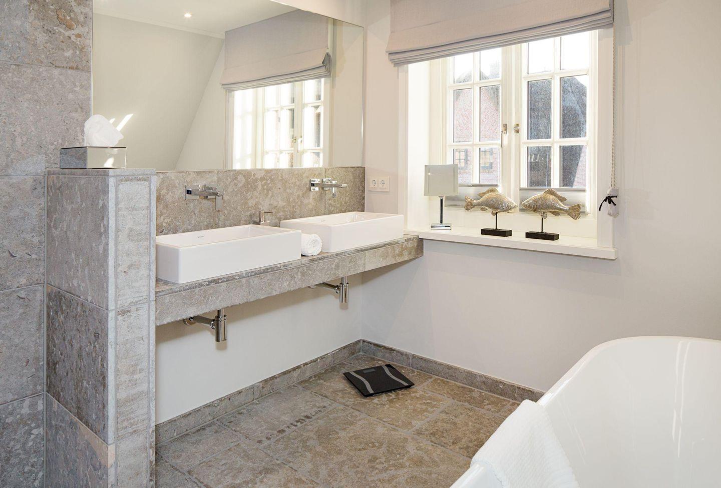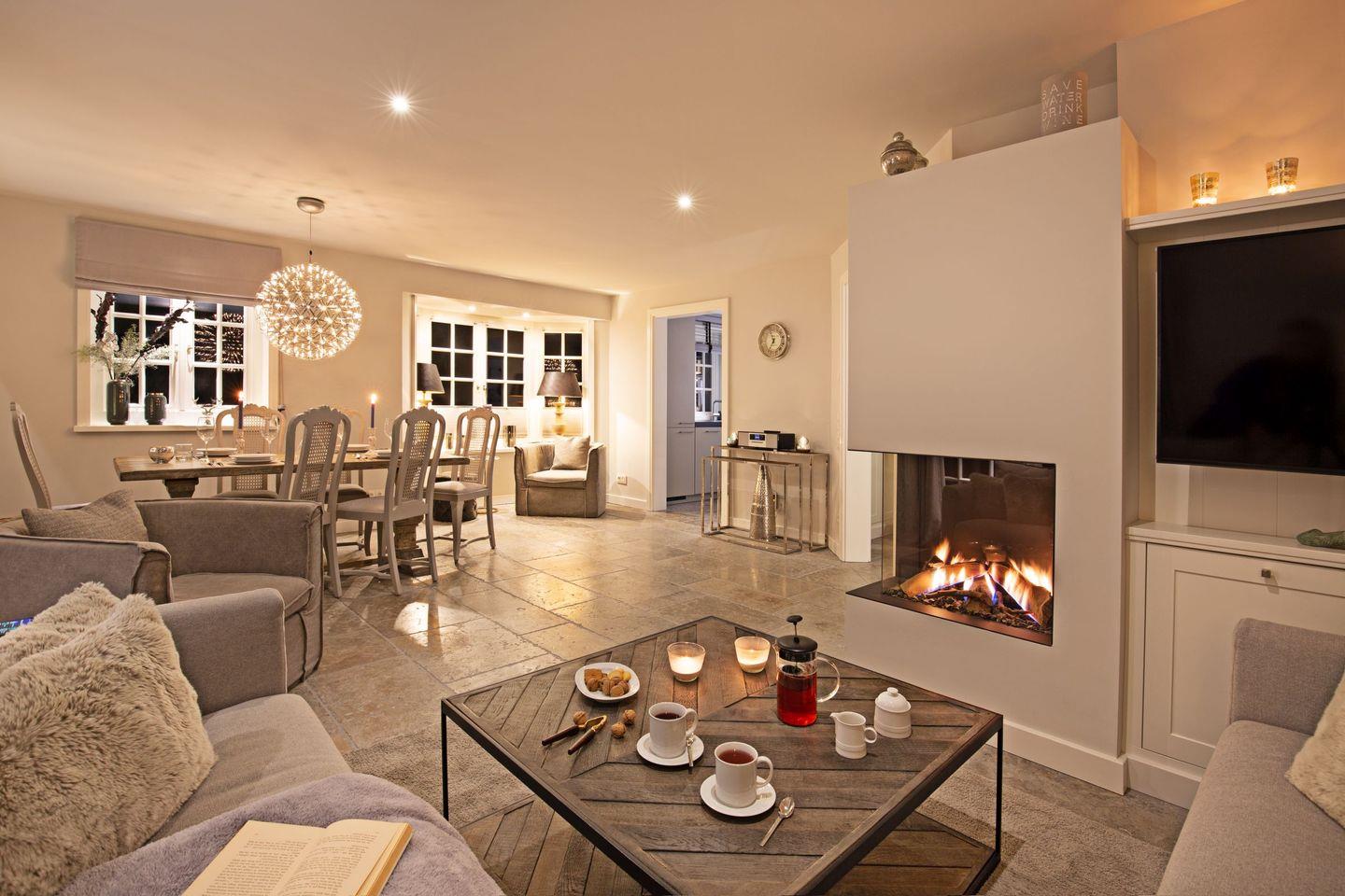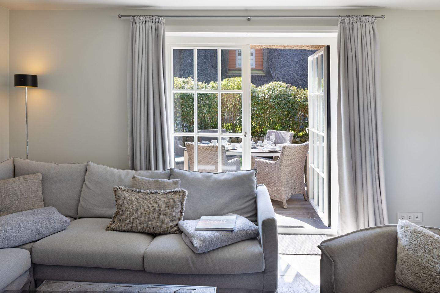 Hochwertig ausgestattetes Feriendoppelhaus unter Reet für bis zu 6 Personen mit Saunalandschaft, Gas-Kamin, Garten und Terrasse in Strandnähe.
