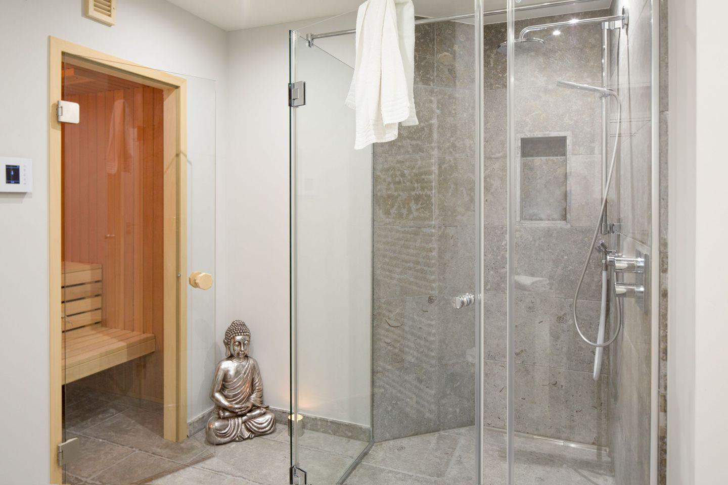 Im Souterrain befinden sich ein weiteres Schlafzimmer und ein Wellnessbad mit Sauna. Das dritte Schlafzimmer befindet sich im 2 Stock des Hauses und verfügt über 2 Einzelbetten.