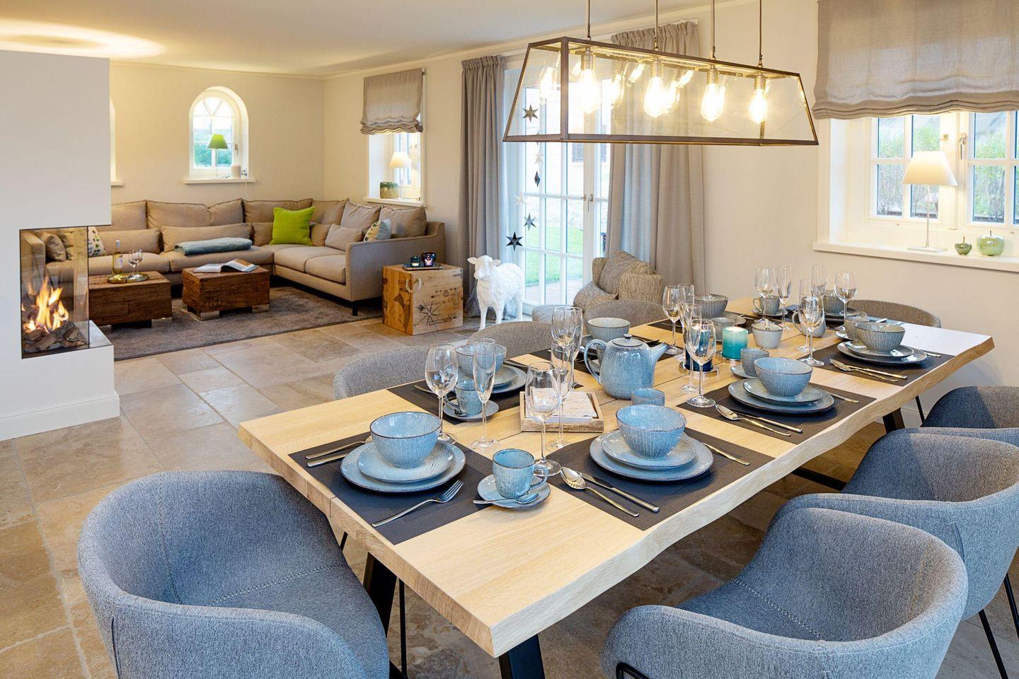 Das hochwertig ausgestattete Ferienhaus unter Reet ist ca. 200m vom Oststrand entfernt. Im großzügigen Wohn-Esszimmerbereich mit Gas-Kamin, der zum Verweilen einlädt, lässt sich wunderbar entspannen.