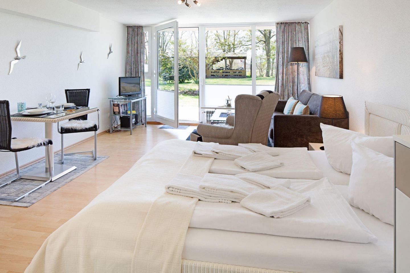 Für Ihre Bequemlichkeit sorgt ein Einkaufsservice, und der Brötchenservice bringt Ihnen frische Backwaren direkt vor die Tür. Einkaufsmöglichkeiten, Restaurants und Cafés sind in nur 300 bis 500 Metern zu erreichen, sodass Sie die kulinarischen Köstlichkeiten der Region in vollen Zügen genießen können.