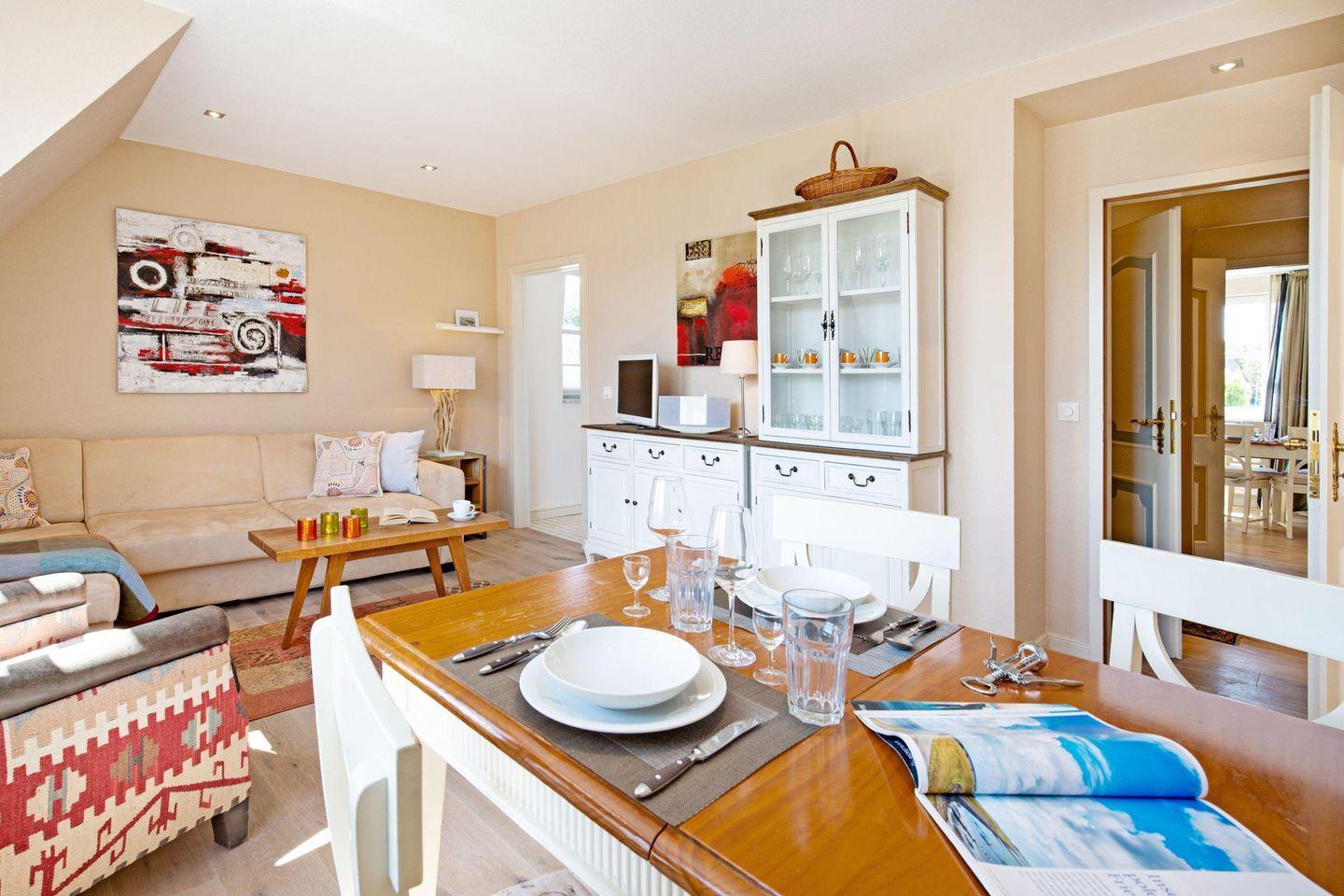 Ein weiteres Highlight ist der Brötchenservice, der es Ihnen ermöglicht, frischgebackene Brötchen direkt in Ihre Unterkunft liefern zu lassen – ein perfekter Start in den Tag! Genießen Sie Ihr Frühstück am Esstisch
