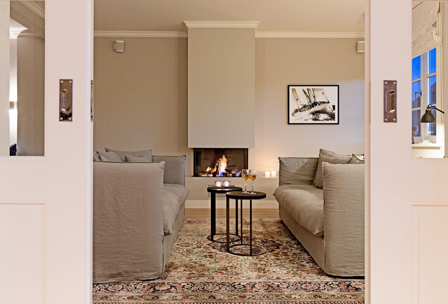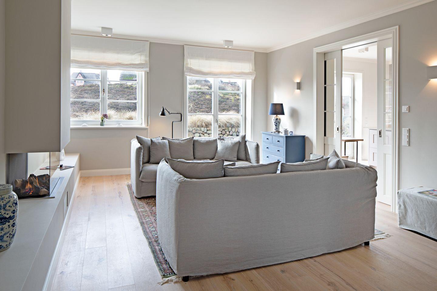 Luxuriöses familienfreundliches Doppelhaus für bis zu sechs Personen mit Dampfbad, Kamin, Garten und Terrasse in Strandnähe.