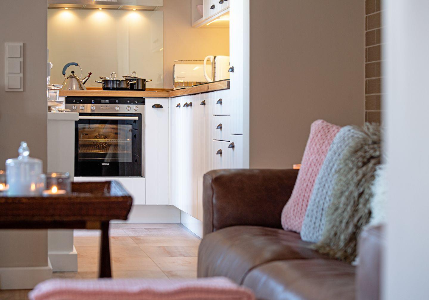 Erleben Sie den farbenfrohen Sonnenuntergang von der windgeschützten Holzterrasse. Sie können Ihr Auto an der hauseigenen Wallbox laden.