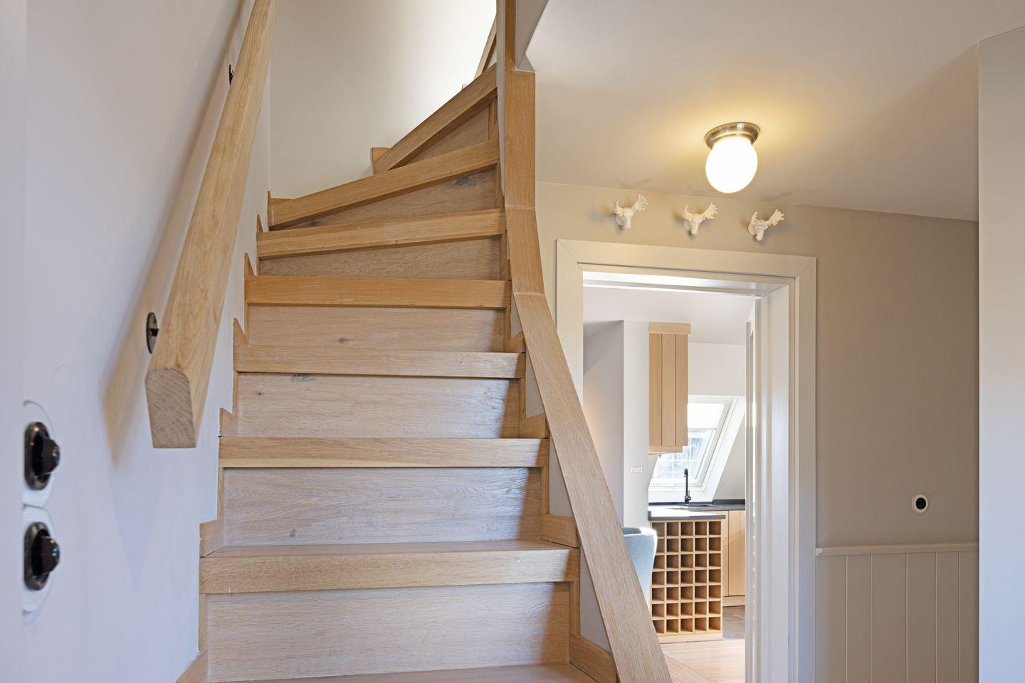Modernes Appartement im Obergeschoss mit Elektrokamin mit Balkon.