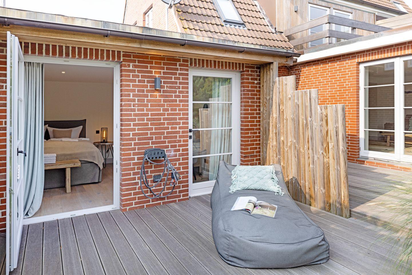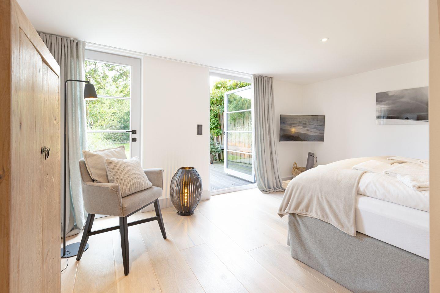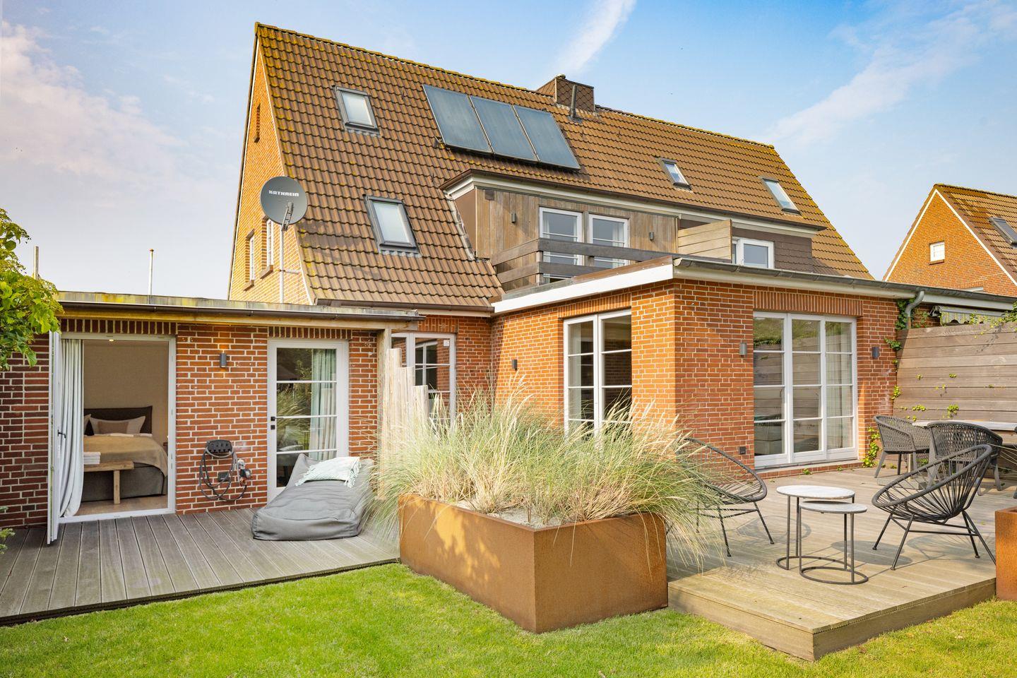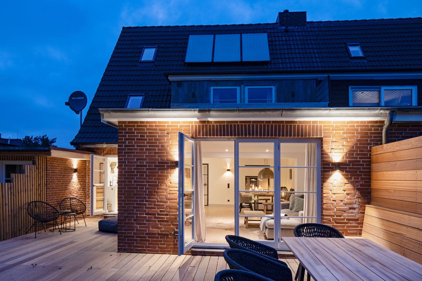 Modernes Ferienhaus The Strand auf Sylt mit Sauna, Kamin und großer Terrasse für erholsame Tage am Meer.