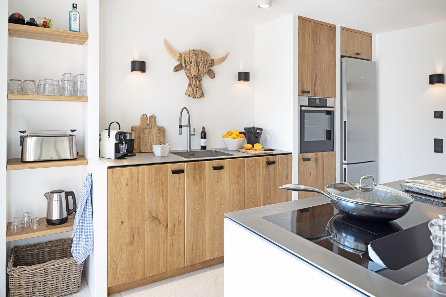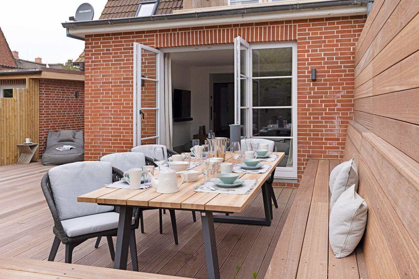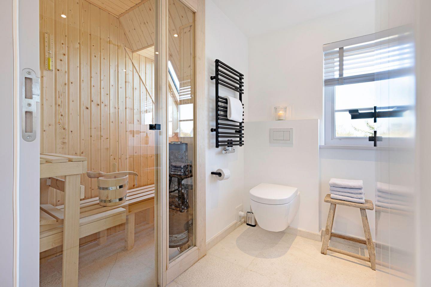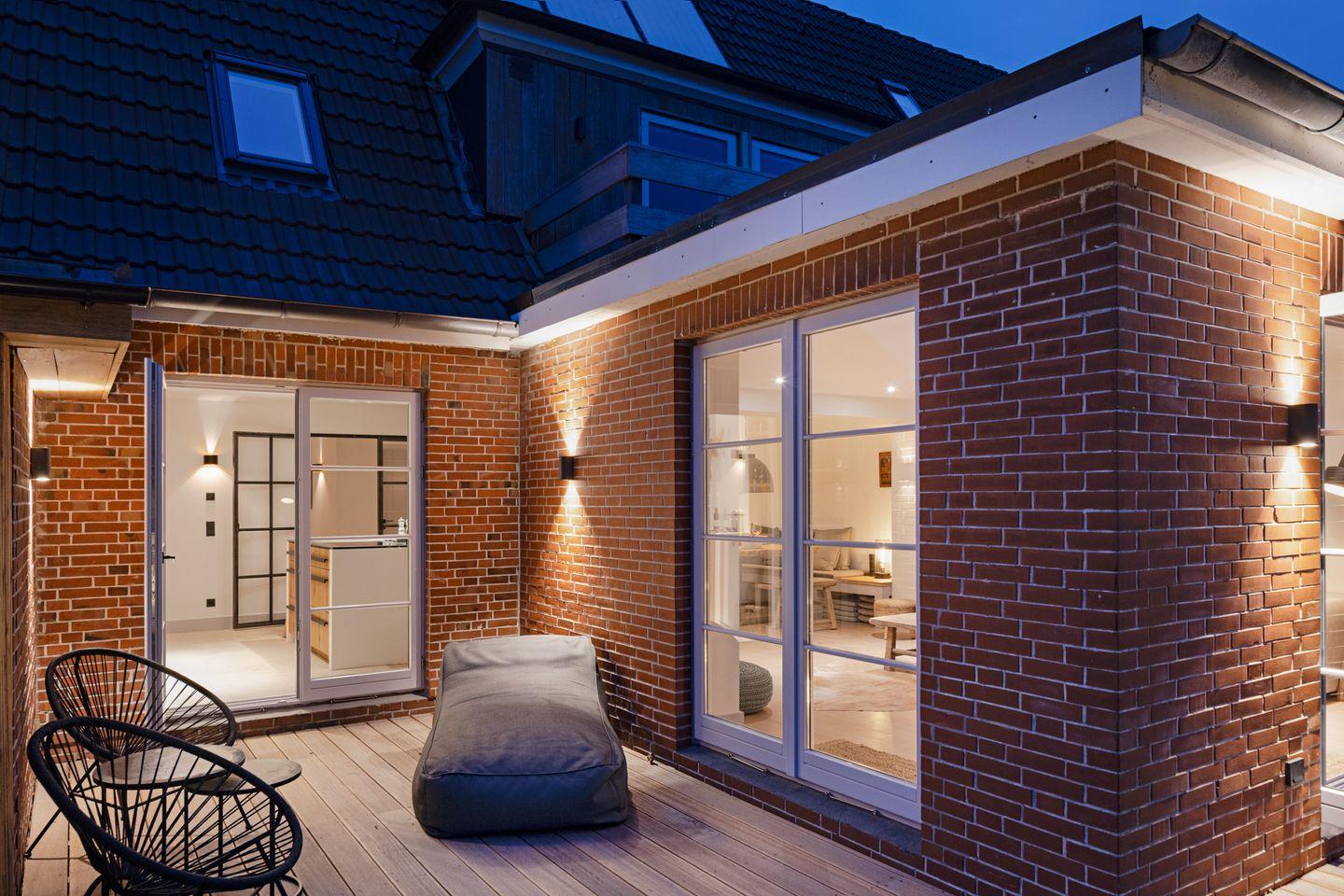Modernes Ferienhaus The Strand auf Sylt mit Sauna, Kamin und großer Terrasse für erholsame Tage am Meer.