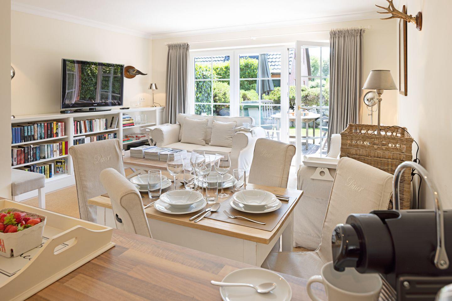 Die voll ausgestattete Küche erfüllt alle Ihre kulinarischen Bedürfnisse. Ausgestattet mit Geschirrspüler, Kühlschrank, Backofen, Cerankochfeld, Nespresso-Maschine und allem nötigen Küchenzubehör, können Sie hier leckere Gerichte zaubern. Und für den perfekten Start in den Tag steht ein Brötchenservice zur Verfügung, damit Sie jeden Morgen frische Brötchen genießen können.