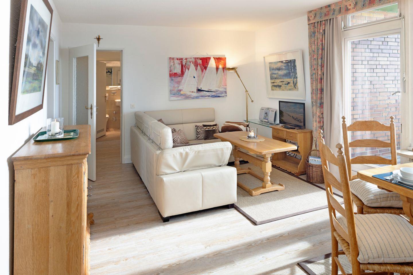 Ihr schönes Appartement "Kroatzbärchen" liegt im vierten Stock mit wunderschönem Blick über das Wattenmeer. Ihr Appartement verfügt über zwei Schlafzimmer, eine separate Küche und Wohnzimmer mit Essbereich mit Zugang zum Balkon.