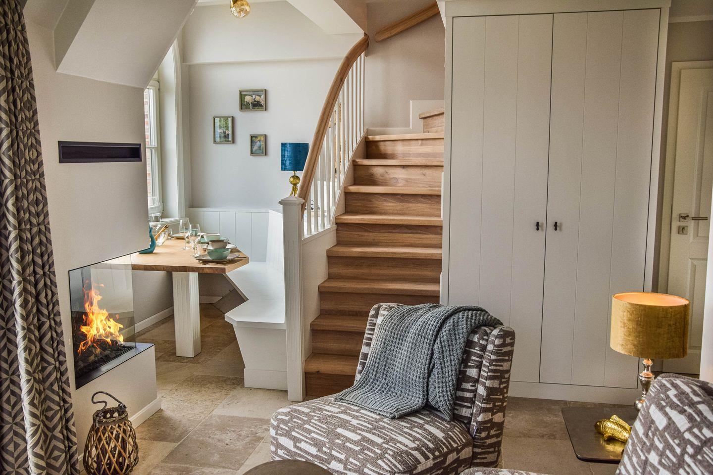 Wenn man sich schon nicht sattsehen kann – satt essen können Sie sich hier jederzeit, denn trotz der ruhigen Lage sind die leckeren Lister Gastro-Spots nur einen Spaziergang entfernt, ebenso wie die hübschen Boutiquen und gut sortierten Supermärkte des nördlichsten Inseldorfs. Als Kontrast zum lebendigen Treiben lockt das nahgelegene Naturschutzgebiet des Ellenbogens zu Wanderungen entlang Nordsee und Watt. Und wenn Sie Ihrem Urlaubstag das perfekte Finale geben wollen, gönnen Sie sich eine Wellness-Session in der Fasssauna im Garten, kuscheln sich zum Abkühlen auf Ihre Terrasse – und lassen den Abend am behaglichen Gaskamin im Giebelzimmer ausklingen.
