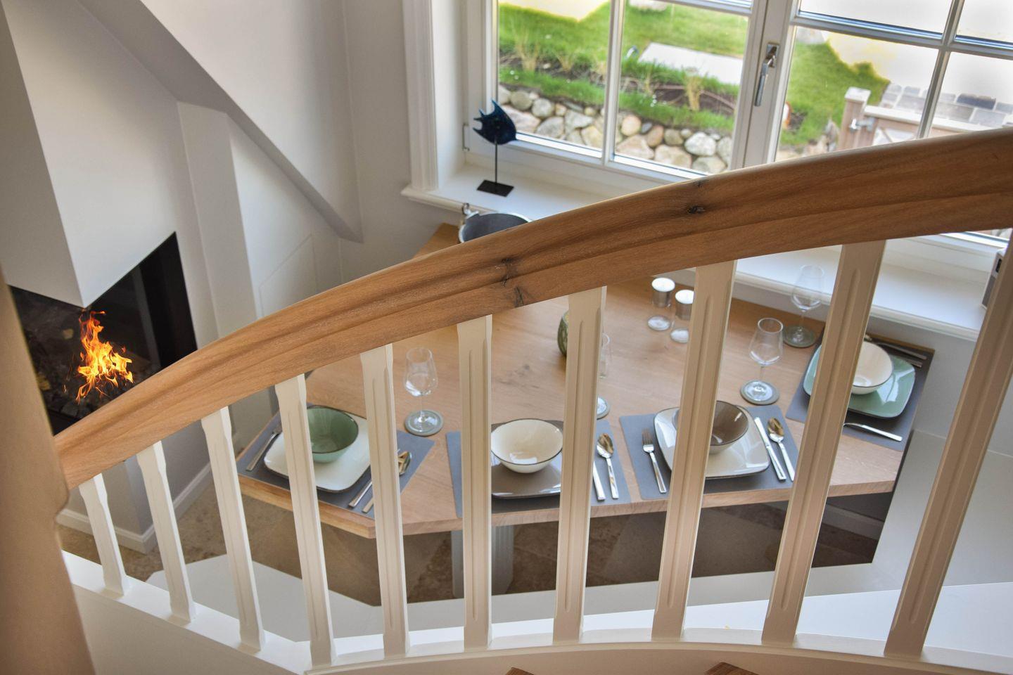 Diese exklusive Maisonette-Ferienwohnung für vier Personen ist nur einen Steinwurf vom Strand des Lister Beckens entfernt: Mit zwei Schlafzimmern und zwei Bädern bietet sie den idealen Rahmen für Ihren rundum relaxten Familienurlaub. Natürlich gibt es schnelles WLAN und TV in jedem Raum, aber – wetten? – die meiste Zeit werden Sie fasziniert nach draußen blicken. Das große Panoramafenster im Kapitänsgiebel legt Ihnen die See vor List zu Füßen. Selbst ins himmlisch bequeme Bett begleiten Sie das Meer und die Gezeiten; von einem der Schlafzimmer können Sie sogar aufs Ellenbogenbecken schauen. Und natürlich genießen Sie auch auf Ihrer privaten Sonnenloggia zum Soundtrack von Möwen und Wellenrauschen diese hinreißende Aussicht.
