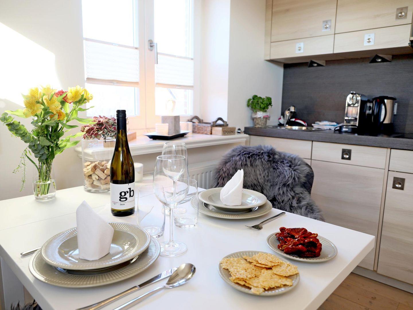 Genießen Sie Ihren Aufenthalt in dieser exklusiven 41 m² großen Dachgeschosswohnung im Herzen von List. Die geschmackvoll eingerichtete Wohnung bietet Platz für 2 Personen und besticht mit hochwertigem Wohnkomfort und einem sonnigen Süd-West-Balkon mit Blick auf das Wattenmeer, das nur 50 m entfernt ist. Der Wohnbereich verfügt über einen Flatscreen-Sat-TV, während das gemütliche Schlafzimmer mit einem Doppelbett (160 x 200 cm) ausgestattet ist. Das großzügige Duschbad sorgt für zusätzlichen Komfort. Ein eigener Eingang mit separatem Treppenhaus bietet Privatsphäre. Im Haus stehen eine Waschmaschine und ein Trockner mit Münzzähler bereit. Fahrradständer befinden sich am Haus, jedoch ohne garantierten Stellplatz. Einkaufsmöglichkeiten, Restaurants und das Erlebniszentrum Naturgewalten sind bequem erreichbar. Der nahegelegene Lister Hafen bietet abwechslungsreiche Freizeitmöglichkeiten. Haustiere sind nicht gestattet.