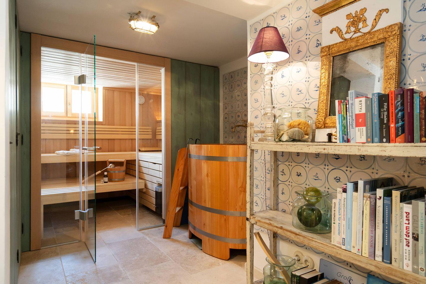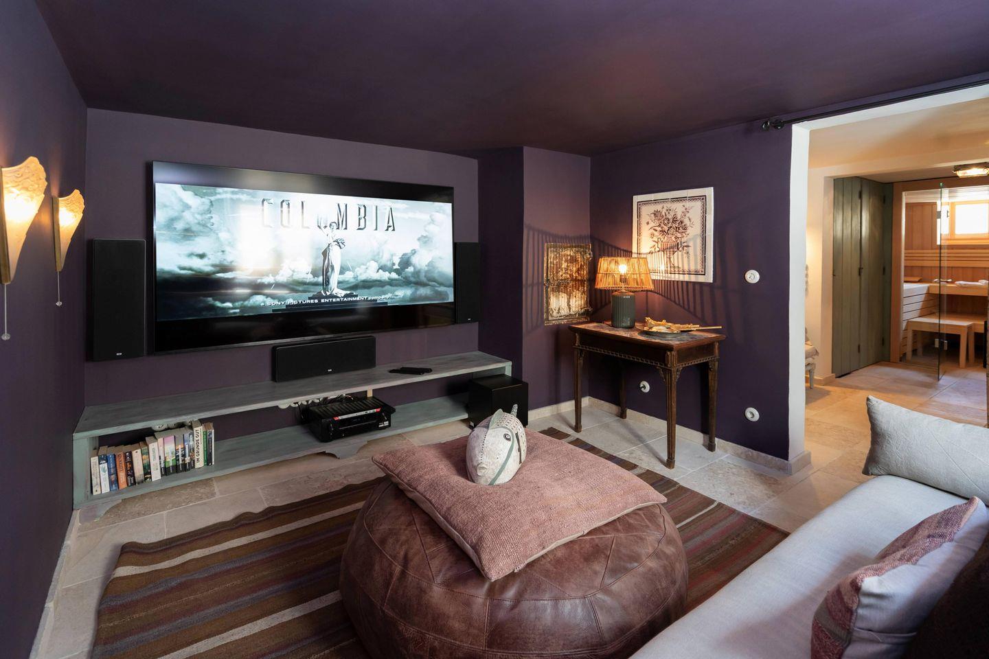 Für Wellness auf höchstem Niveau stehen eine finnische Sauna, ein Infrarotsitz und eine Eisbadtonne inhouse zur Verfügung. Das moderne Heimkino im Untergeschoss verbindet erstklassige Technik mit exklusivem Séparée-Flair – ideal für stimmungsvolle Filmabende. Ebenso im Untergeschoss befinden sich eine Waschmaschine und ein Trockner, die besonders bei längeren Aufenthalten zusätzlichen Komfort bieten.