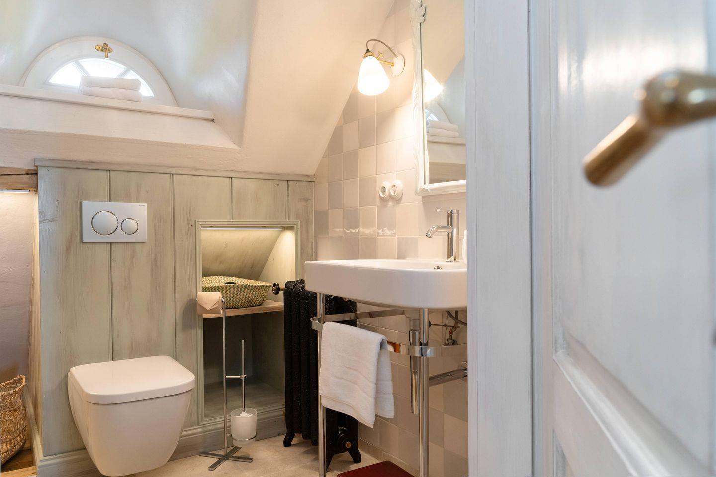 Ein modernes Badezimmer im Obergeschoss sowie ein separates Gäste-WC im Erdgeschoss ergänzen den Wohnkomfort.