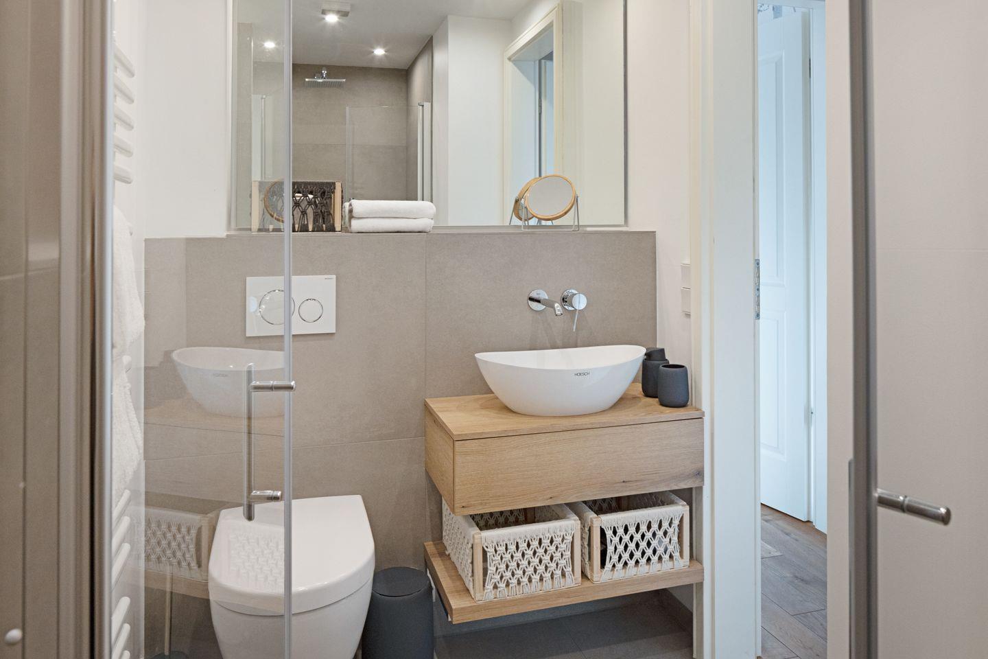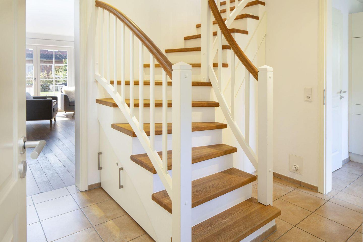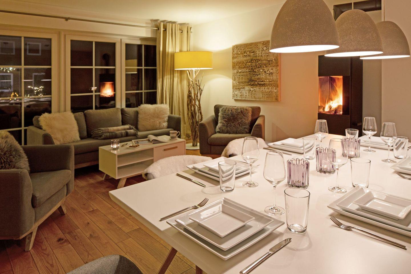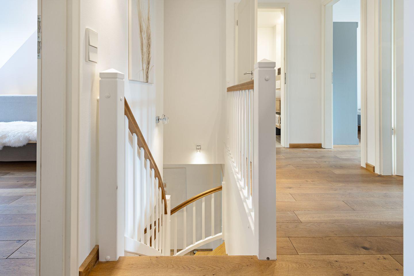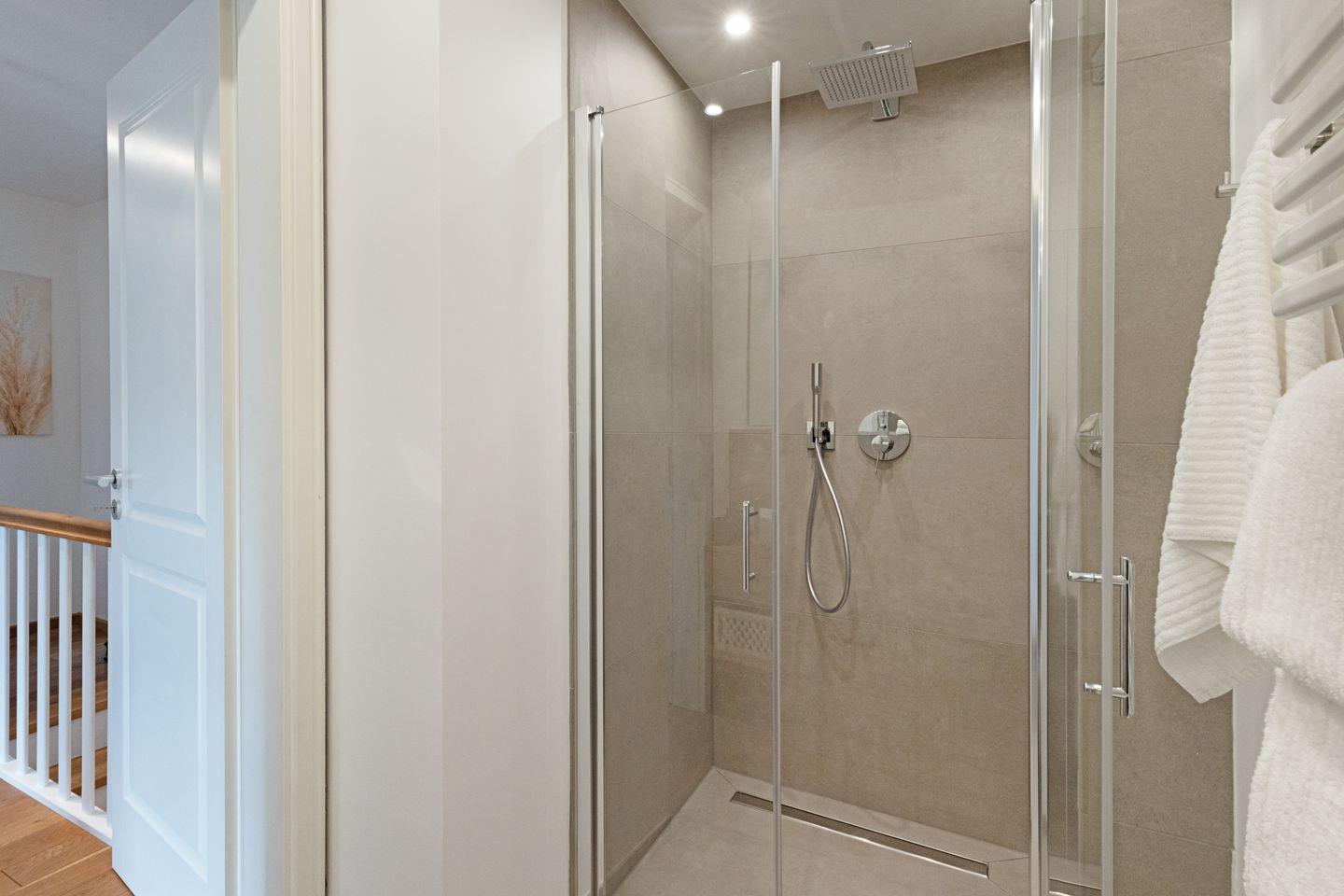 Das modern ausgestattete Ferienreihenhaus ist im Wohnbereich mit Eichenparkett und einem Kaminofen ausgestattet. Im 1. Stock befinden sich die drei Schlafzimmer zwei mit Doppelbett und eins mit großer Schlafcouch sowie ein Bad. Im EG bietet das Haus ein zweites Bad.