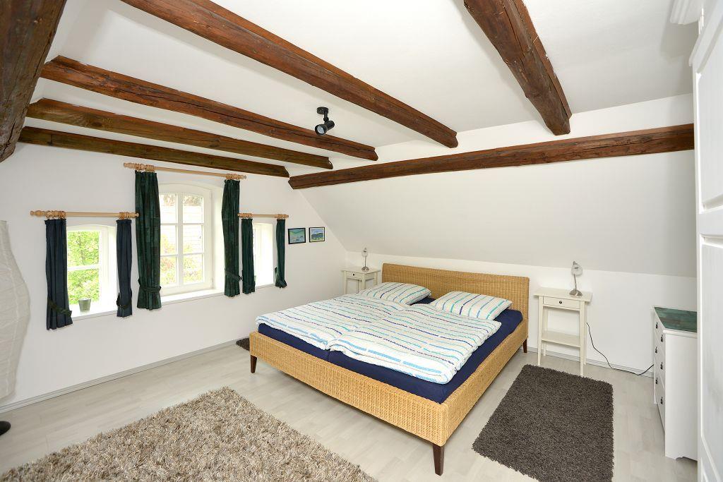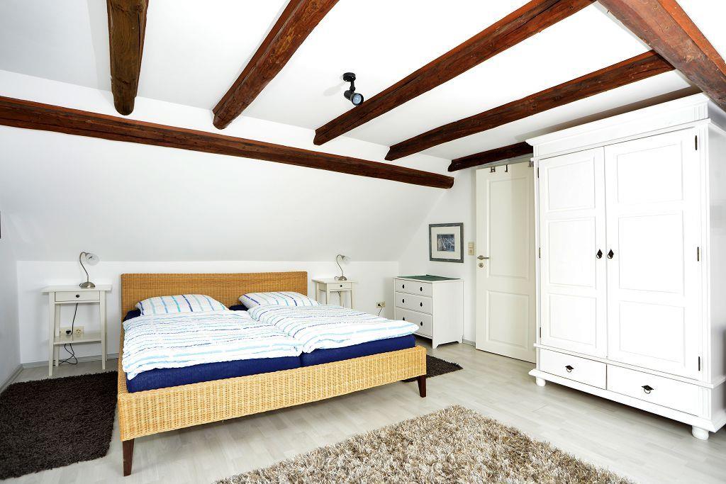 Im Obergeschoss befinden sich 2 weitere Schlafräume, eines mit Doppelbett und eines mit einem Einzelbett, dass man bei Bedarf als Doppelbett umfunktionieren kann. Ein Gäste-WC komplettiert das OG.
