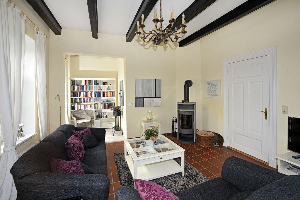 Das komfortable restaurierte Ferienhaus von 1882 befindet sich im historischen Ortskern von Loquard. mit Saunahütte und Strandkorb im gepflegten, schönen Garten. Jeder Raum ein Wohntraum! Durch den großzügigen Flur gelangen Sie zu den zwei herrschaftlichen Wohnräumen mit jeweils fünf großen Fenstern. Die „Upkammer“, der Nebenraum des westlichen Wohnzimmers, wurde wie nach alter Überlieferung wieder als separates Schlafzimmer im Erdgeschoss hergerichtet. Das gemütliche westliche Wohnzimmer verfügt über einen schönen Kaminofen, einen Fernseher mit DVD-Player, eine Stereo-Anlage und eine Leseecke. Im Süden des Ferienhauses liegen ein großes Badezimmer, ein zusätzliches Duschbad, der Hauswirtschaftsraum und die Küche. Der große Esstisch in der modern ausgestatteten Wohnküche lädt zum gemeinsamen Essen, Klönen und Spielen ein. Von hier erreichen Sie auch die Südterrasse mit Blick auf den liebevoll bepflanzten ruhigen Garten.