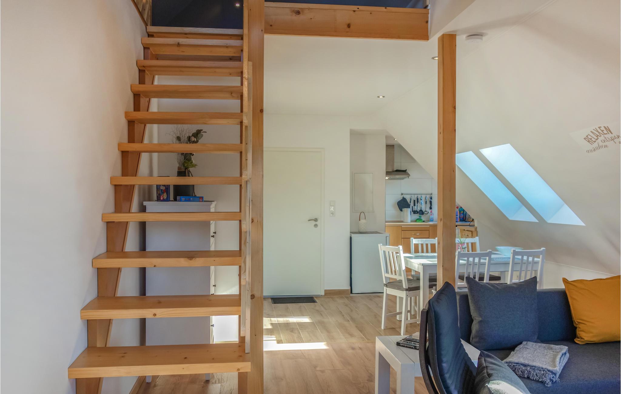 Verbringen Sie einen ruhigen und entspannten Urlaub, zusammen mit Ihrem Lieblingsmenschen, in dieser schönen Ferienwohnung auf zwei Etagen in Loxsted. Die Wohnung ist gut ausgestattet und bietet Ihnen alles, was Sie zu Ihrer Erholung benötigen. Legen Sie nach einem aktiven Tagen, die Beine auf dem Sofa hoch, schwingen die Kochlöffel in der Küche und genießen die Abende bei Brett- und Kartenspielen. Laue Sommerabende können Sie auf dem großen, sonnigen Balkon genießen, der der ideale Ort zum Entspannen, Essen und Spielen ist.