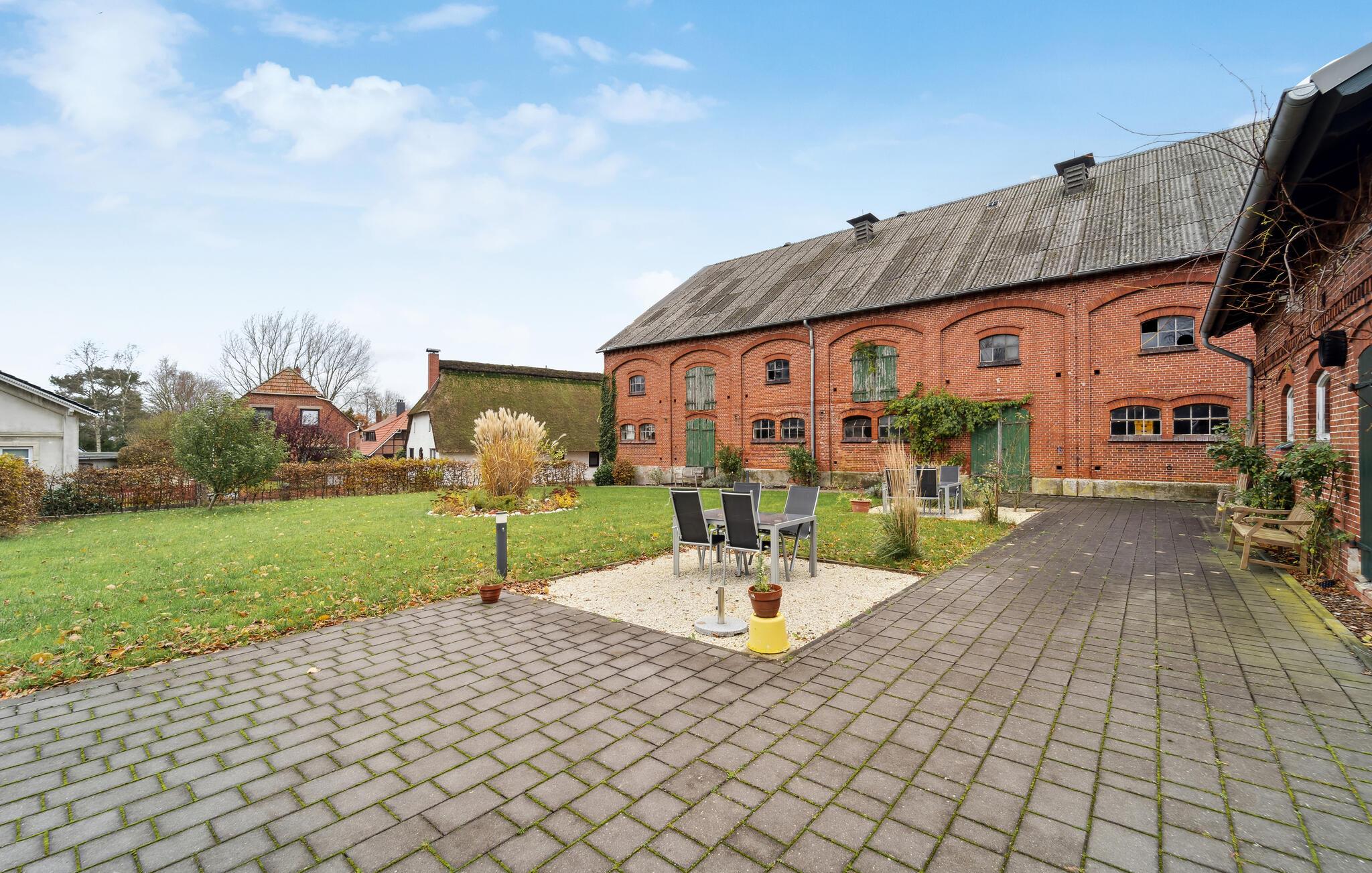 Gemütliche Ferienwohnung auf einem Hof nahe Loxstedt mit Terrasse und Gemeinschaftsgarten für erholsame Urlaubstage.