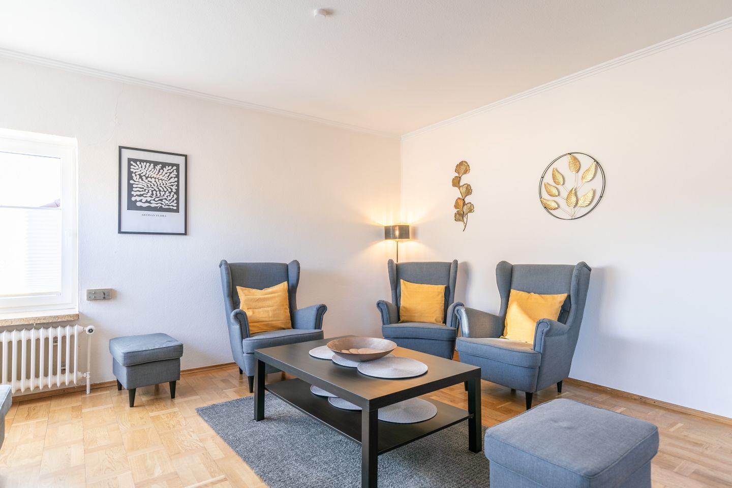Moderne Handwerkerwohnung F47 in Lunden mit 4 Schlafzimmern, WLAN, Küche, Parkplätzen und inklusive Bettwäsche.