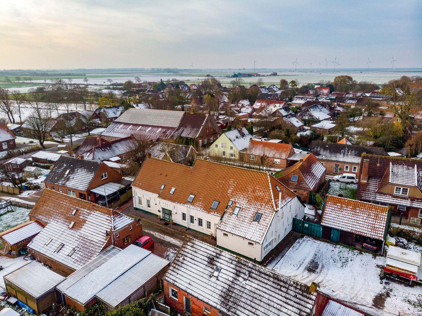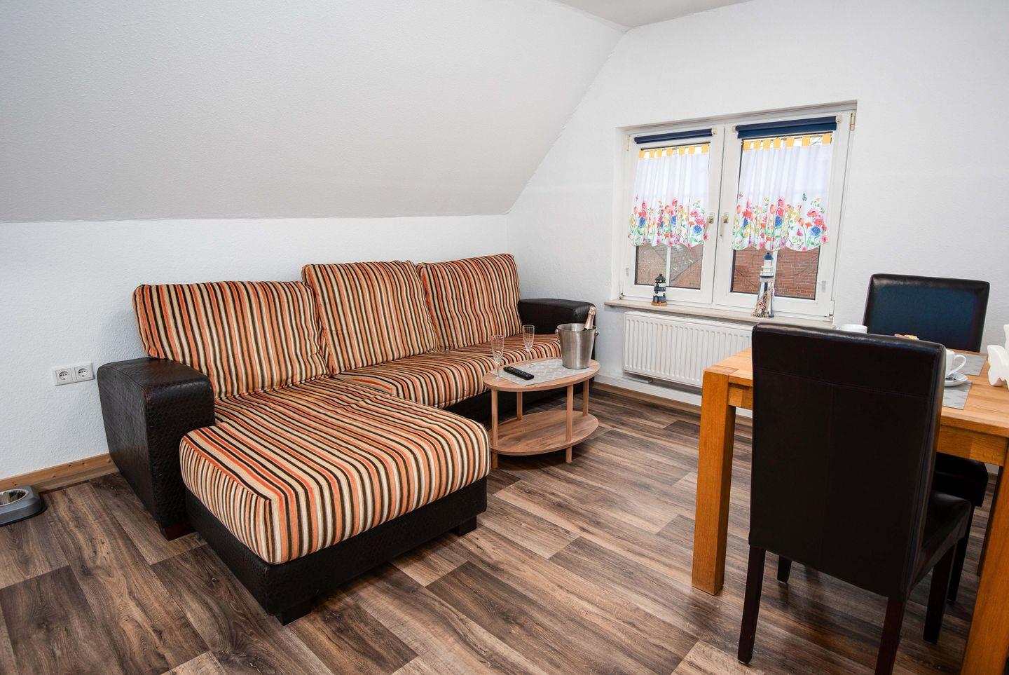 Die „Auster“ vereint historischen Charme mit modernem Komfort. Warme Farben, natürliche Materialien und eine klare Raumgestaltung machen die Wohnung zu einem gemütlichen Rückzugsort – ideal für entspannte Tage in der Krummhörn, nahe der Nordsee.